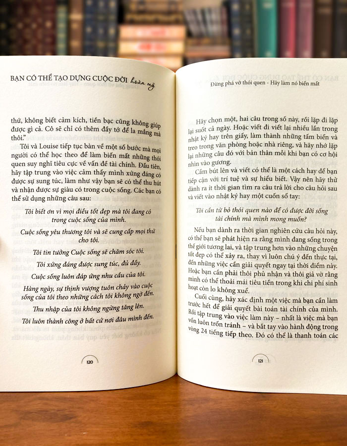 Cuốn sách được viết từ cuộc trò chuyện/phỏng vấn của tác giả Cheryl Richardson với tác giả Louise Hay những lời cảm nhận, bình luận, chia sẻ của tác giả Cheryl Richardson càng làm chúng ta hiểu sâu sắc hơn về câu chuyện, bài học mà tác giả Louise Hay truyền đạt, cách dẫn dắt câu chuyện thật sự ảnh hưởng lên suy nghĩ của tôi rất nhiều. Tôi thấy ý thức hơn về cách mình suy nghĩ và dùng những từ ngữ mỗi ngày. Tôi dùng nhiều câu khẳng định tích cực hơn trong cuộc sống, trong công việc.