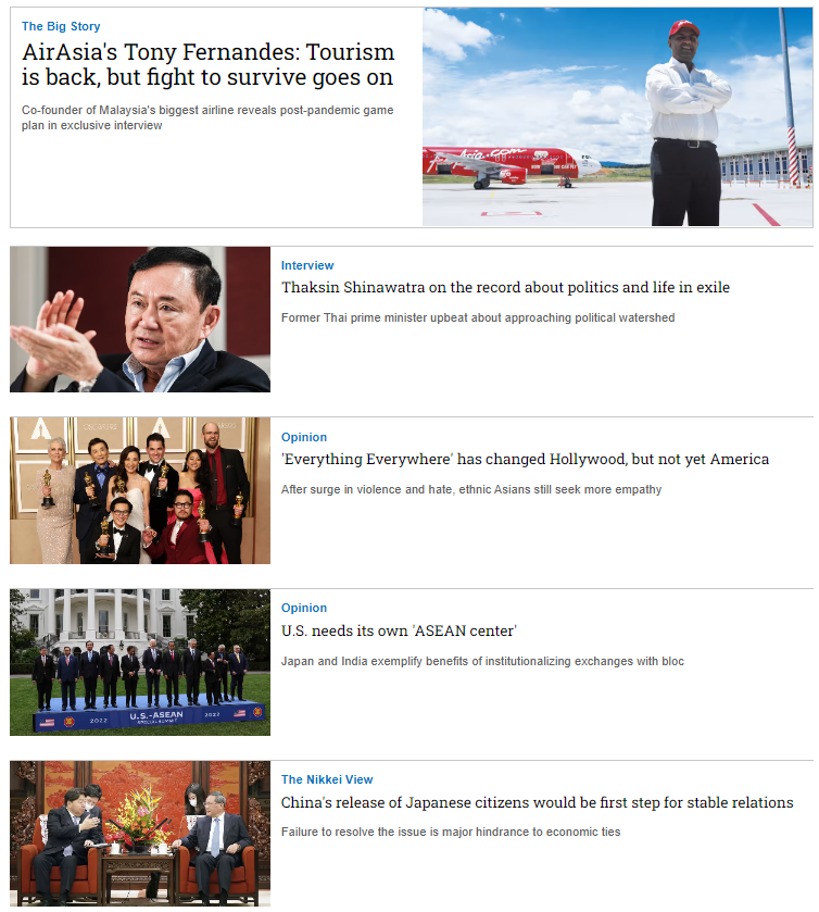 Mỗi tuần, Nikkei Asia xuất bản hơn 16,000 ấn phẩm đến tay độc giả của 30 quốc gia. Nikkei là thương hiệu báo tài chính uy tín và lớn nhất thế giới, mỗi ngày tại Nhật Bản phát hành 4 triệu bản. Tập đoàn còn sở hữu các đầu báo uy tín khác như Financial Times, Dealstreet Asia,