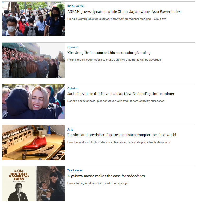 • Là thương hiệu truyền thông lớn và được kiểm duyệt nội dung hằng tuần với dạng thông tin chính thống, được thu thập từ các phóng viên uy tín trên toàn Châu Á, là nguồn trích xuất cho nhiều nhà báo tại Việt Nam.