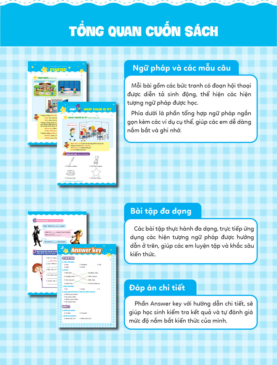 Bài mở đầu (Starter): Đầu mỗi cuốn là bài Starter, bài học sẽ giới thiệu những kiến thức cơ bản nhất, hoặc ôn lại các kiến thức cũ mà các em đã học ở các cấp độ trước.