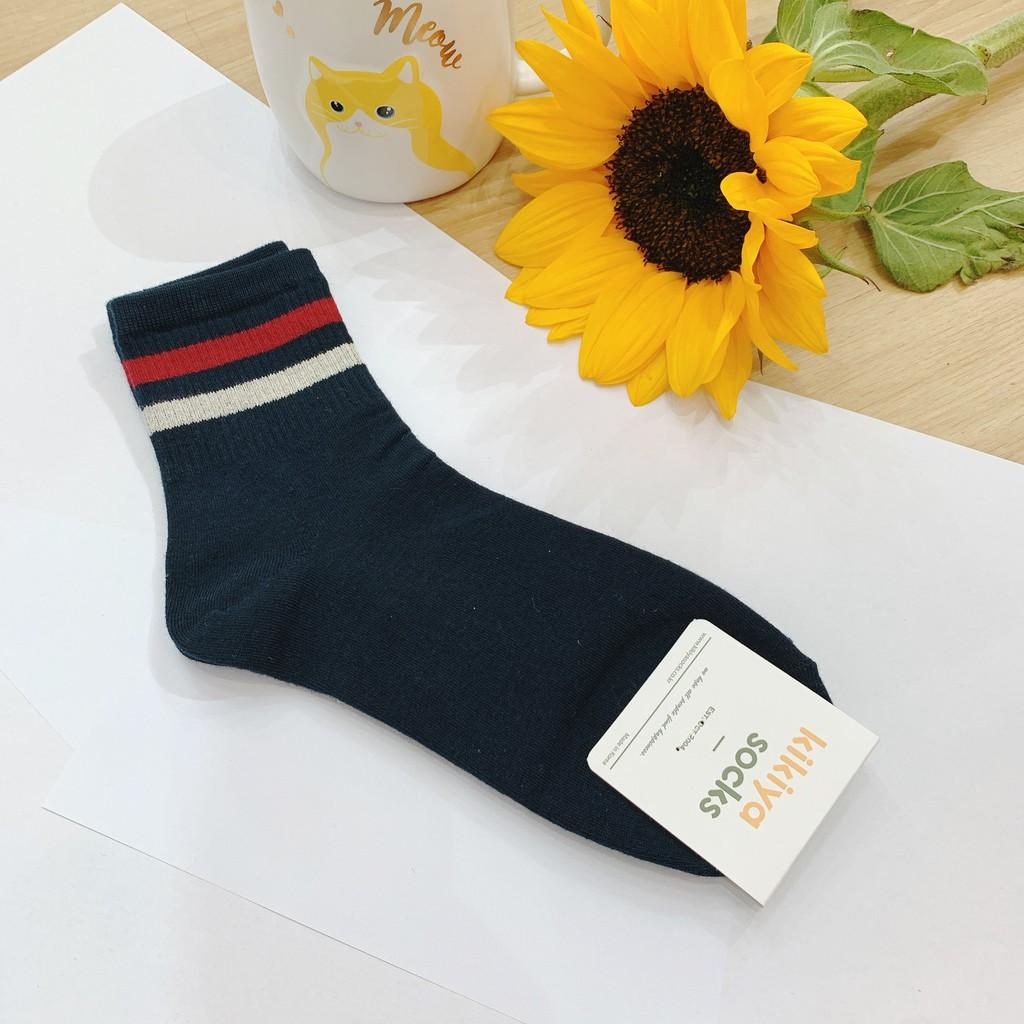 ✨Tất vớ nữ cổ cao sọc ngang Kikiya cao cấp Hàn Quốc W-C-002