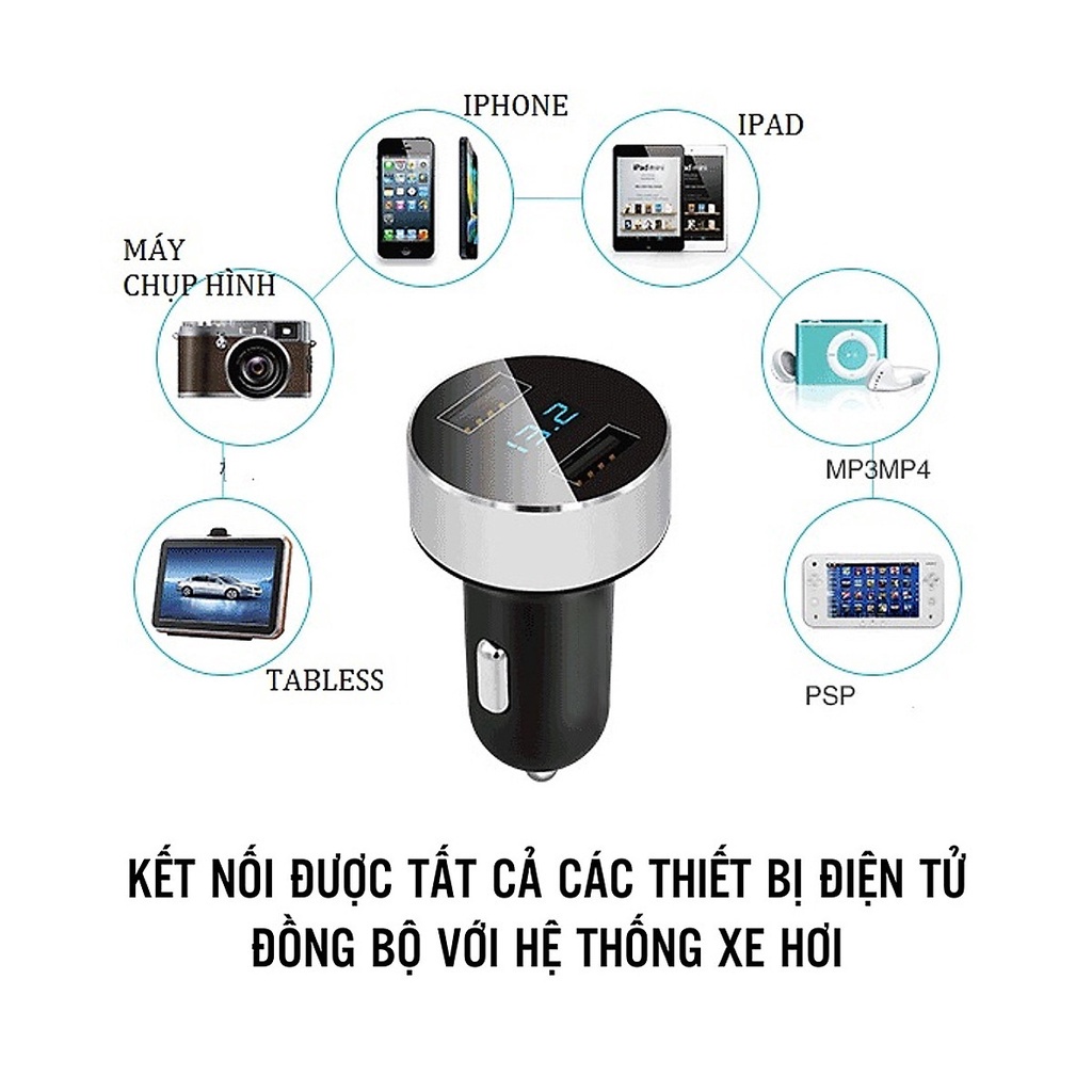 Tẩu Sạc Xe Ô Tô Có Màn Hình Led Hiển Thị - Công dụng: hai cổng sạc USB có thể sạc 2 thiết bị cùng 1 lúc, hỗ trợ tất cả thiết bị đầu