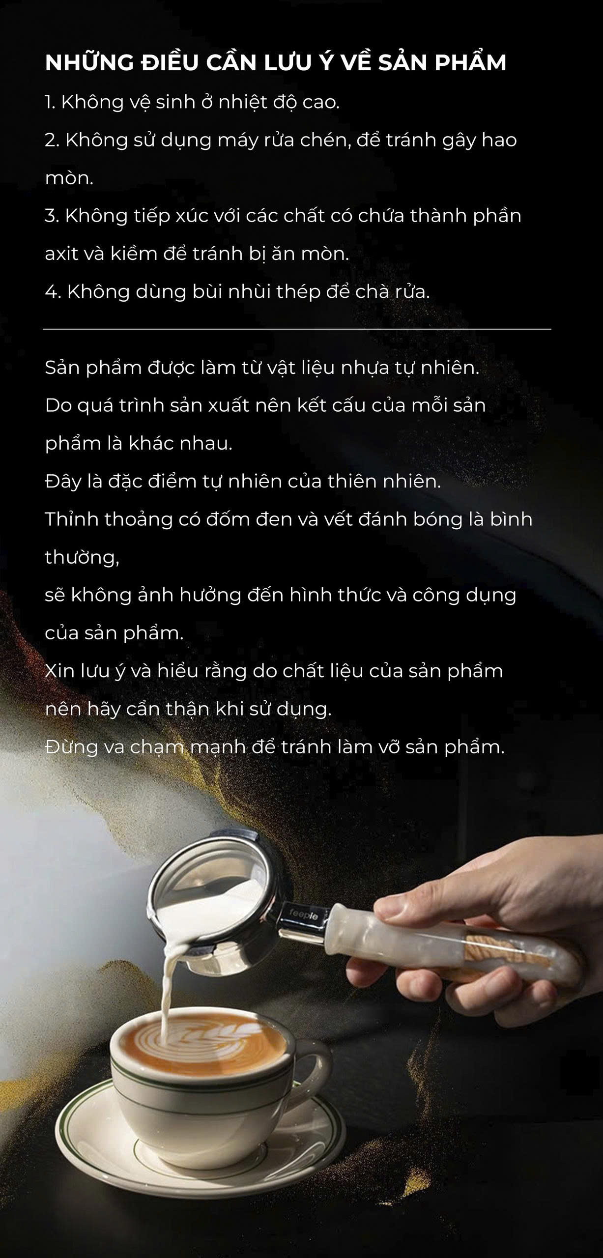 Sự kết hợp tuyệt vời giữa gỗ óc chó và nhựa cao cấp mang đến cho bạn trải nghiệm pha chế espresso đẳng cấp. Tay cầm thiết kế không đáy giúp bạn quan sát quá trình chiết xuất cà phê rõ ràng, kiểm soát chất lượng nước trong mỗi tách cà phê.