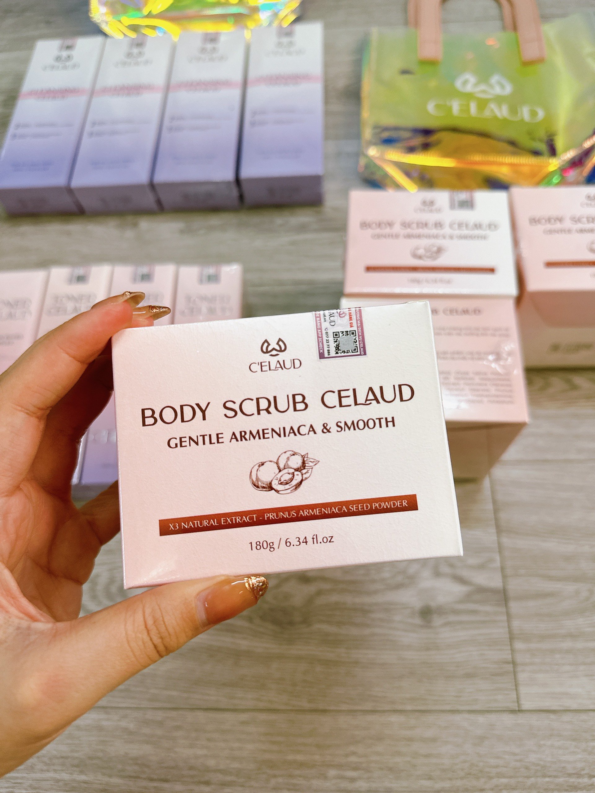 Tẩy tế bào chết, tái tạo và làm mịn da Body Scrub Celaud - Công nghệ Mask & Scurb kết hợp các dưỡng chất làm mềm lớp sừng, tế bào chết trên da. Sau