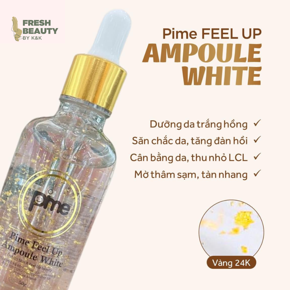 Tế bào gốc vàng 24K trắng da, tinh chất ức chế nám, tàn nhang, dưỡng da căng bóng mịn màng, kiềm dầu, se chân lông, tái tạo phục hồi da Pime Feel Up Ampoule White 50mlSản phẩm nhập khẩu chính hãng từ...