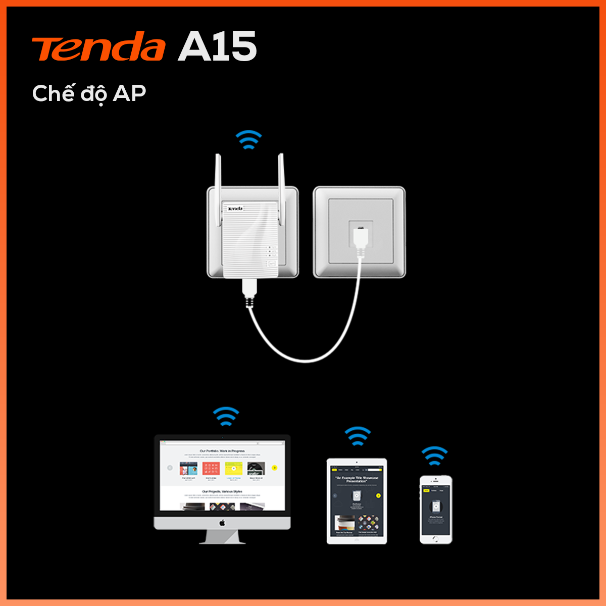 ✨Tenda Bộ kích sóng Wifi A15 Chuẩn AC 750Mbps - Hàng Chính Hãng