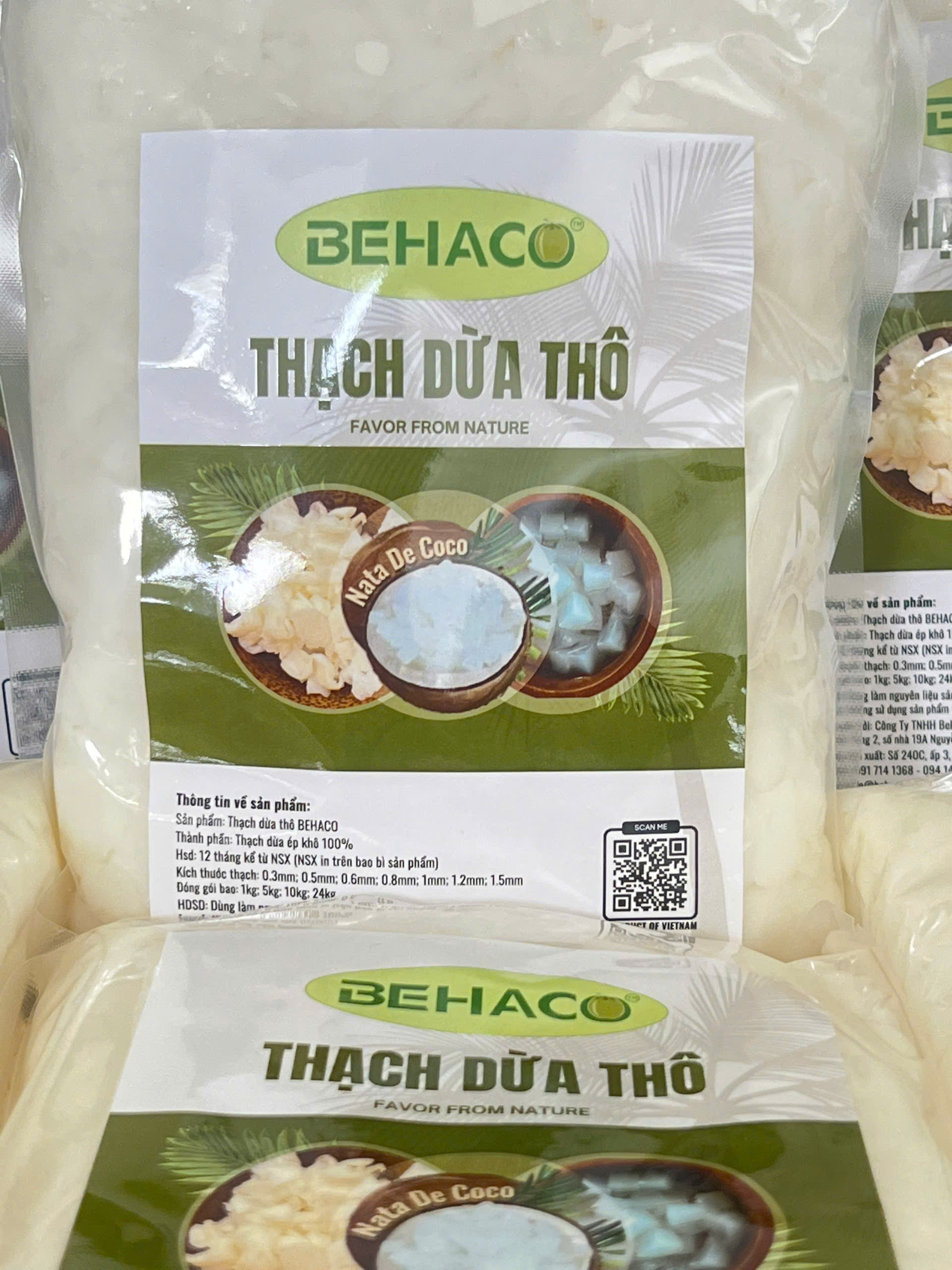 Mua tại TiktokTHẠCH DỪA ÉP KHÔ BEHACO - 12 LY Thạch dừa thô là lớp Hemicellulose, sản phẩm sinh khối đươc tạo thành bởi sự lên men của vi khuẩn Acetobacter xylinum trong môi trường nước dừa già bổ sung các chất dinh dưỡng cần thiết tốt cho sức khỏe. Thạch dừa thô được sản xuất tại Công Ty TNHH Behaco Bến Tre Việt Nam.