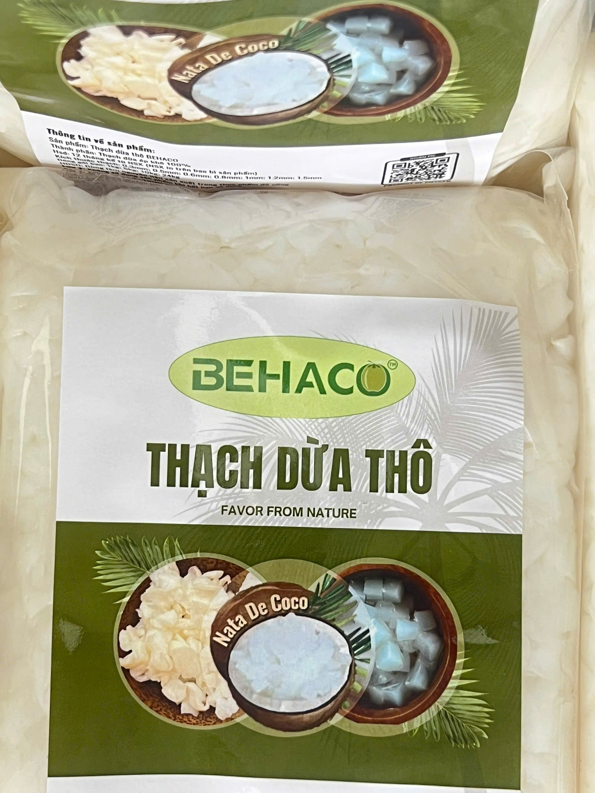 Mua tại TiktokTHẠCH DỪA ÉP KHÔ BEHACO - 15 LY Thạch dừa thô là lớp Hemicellulose, sản phẩm sinh khối đươc tạo thành bởi sự lên men của vi khuẩn Acetobacter xylinum trong môi trường nước dừa già bổ sung các chất dinh dưỡng cần thiết tốt cho sức khỏe. Thạch dừa thô được sản xuất tại Công Ty TNHH Behaco Bến Tre Việt Nam.