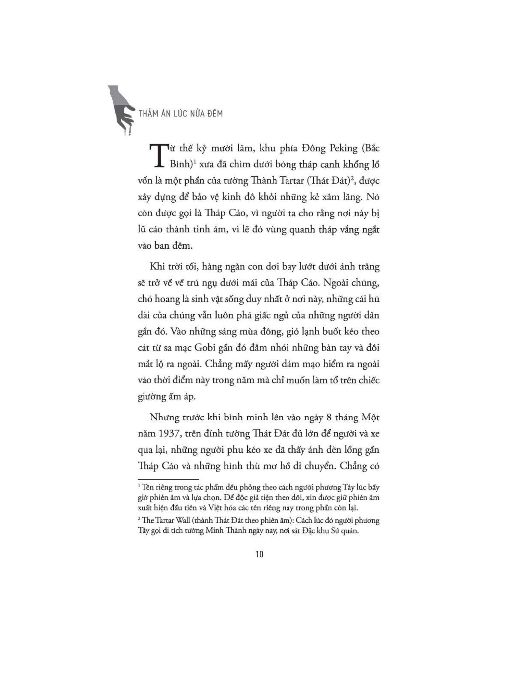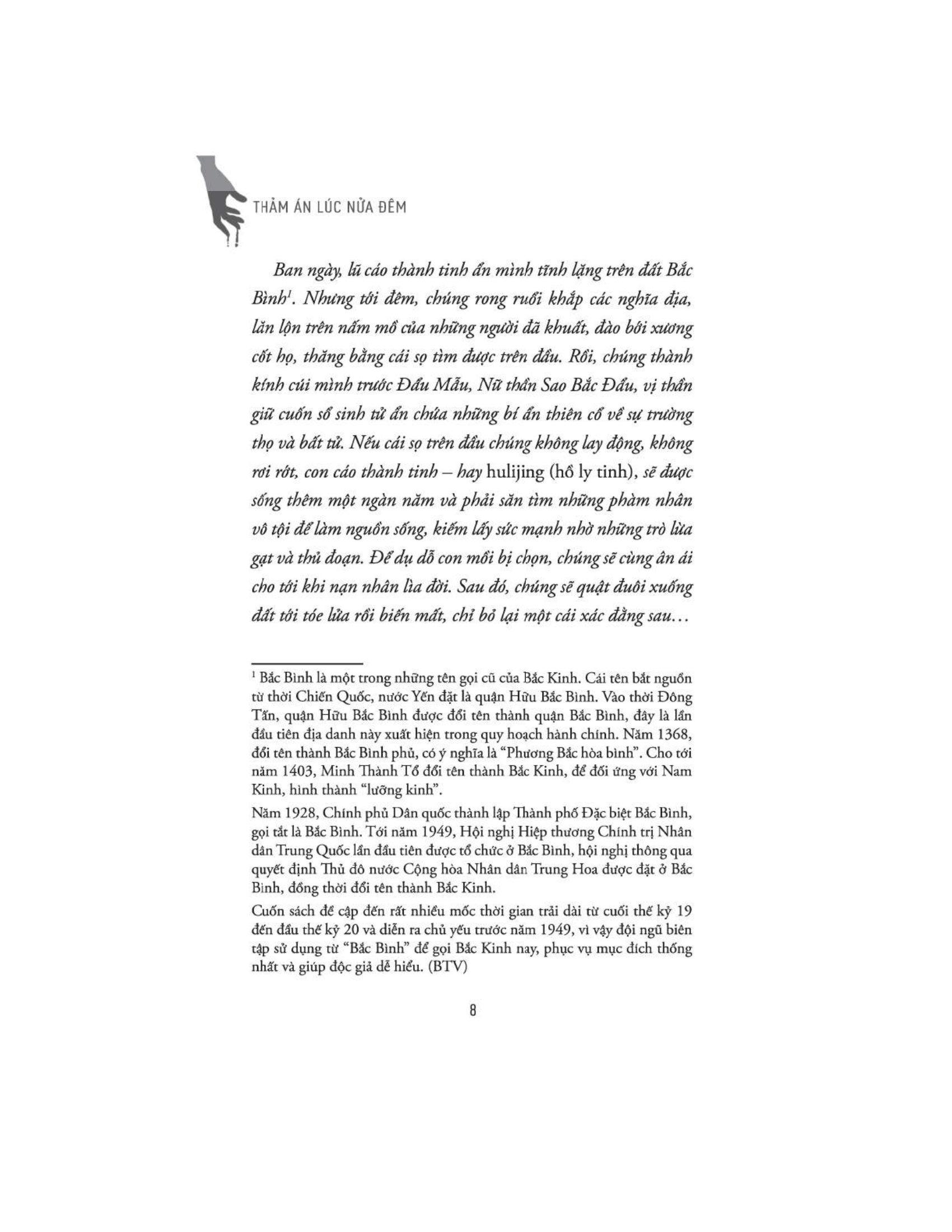 Bắc Kinh năm 1937 là sự hòa quyện giữa đặc quyền và tai tiếng, giữa xa hoa và những hang ổ ốc phiện, giữa tin đồn và mê tín dị đoan. Người Nhật đang bao vây thành phố, và việc phát hiện ra thi thể bị tàn phá nặng nề của Pamela Werner, con gái một cựu lãnh sự Anh, khiến Bắc Kinh vốn đã chìm trong lo lắng lại càng thêm rùng m.ình khiếp sợ. Phải chăng Pamela đã bị một gã điên giết hại? Mọi nghi vấn được đặt ra, thủ phạm có thể là một trong số những tên lính Nhật hay lũ hồ ly tinh đáng sợ? Với danh sách nghi phạm ngày càng tăng và manh mối mỗi lúc một thưa thớt dần, hai vị thanh tra – một người Anh và một người Trung Quốc – đã chạy đua với thời gian để tìm ra hung thủ trước khi quân Nhật tràn vào. Liệu họ có thể tìm ra hung thủ hay không?