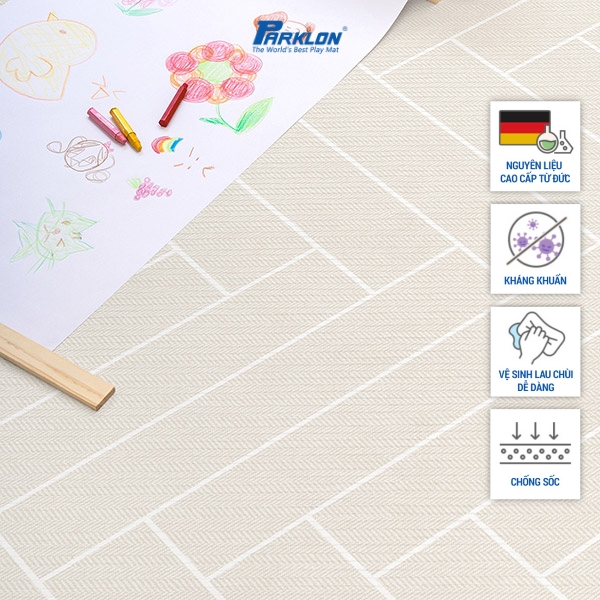 Thảm Trẻ Em Hàng Đầu Thế Giới Nhập Khẩu Chính Hãng Hàn Quốc Parklon Thương hiệu: Parklon Xuất xứ: Hàn Quốc Chất liệu: Nhựa PVC Họa tiết: Milo Beige / Màu Be Trơn Kích