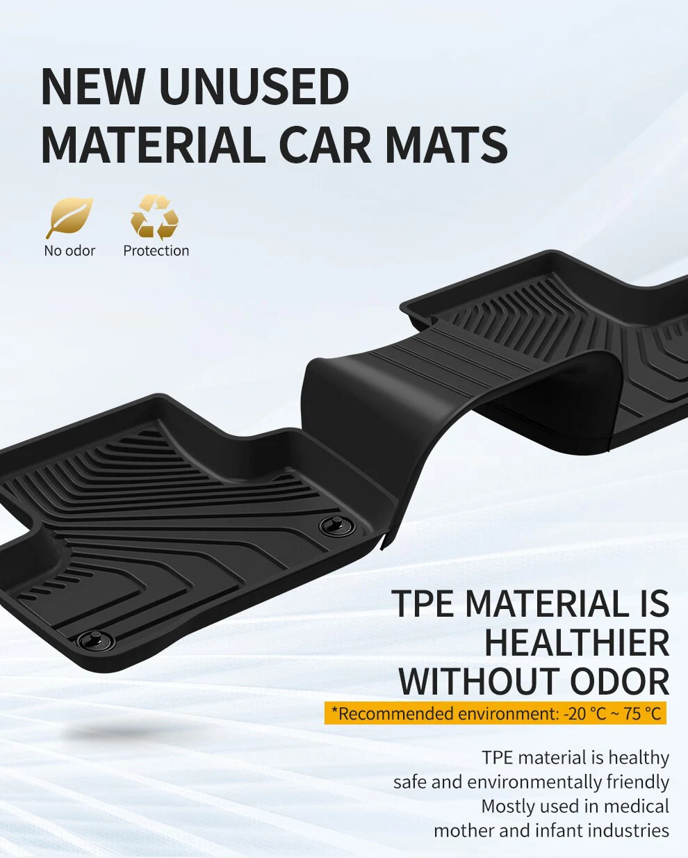 Sản phẩm làm bằng chất liệu nhựa TPO (Thermoplastic Elastomers) được dịch là: (nhựa nhiệt dẻo đàn hồi)_một vật liệu cao cấp chống thấm nước, không mùi, có độ bền - độ đàn hồi cao