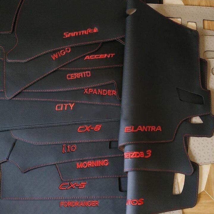 Đặc điểm: Chất liệu da cao cấp, Có đế chống trượt, Màu da vân các bon đen mịn màng Chất Thảm chống nắng taplo Da lượng như hình