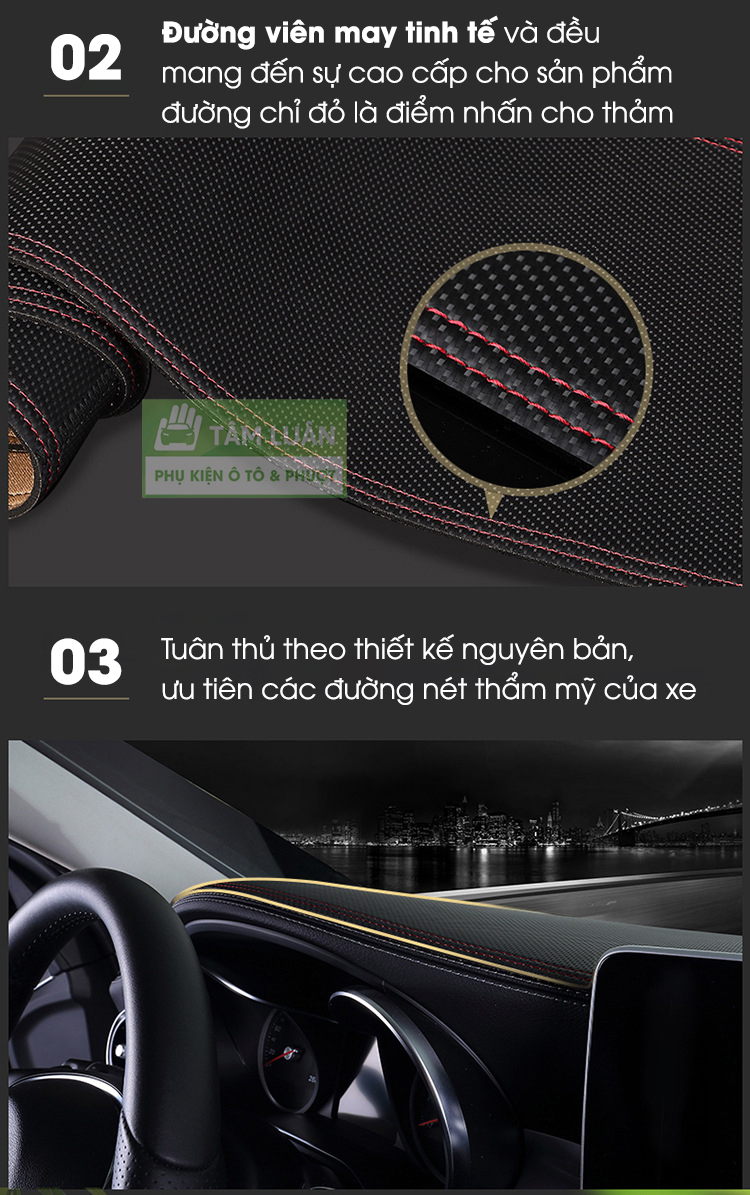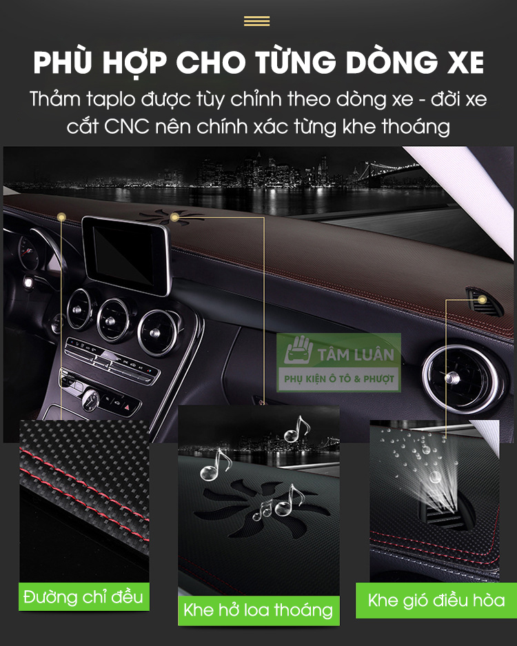 ✨Thảm taplo xe ô tô da carbon Tâm Luân chống nắng và chống nóng không thấm nước (26 dòng xe - đời xe)