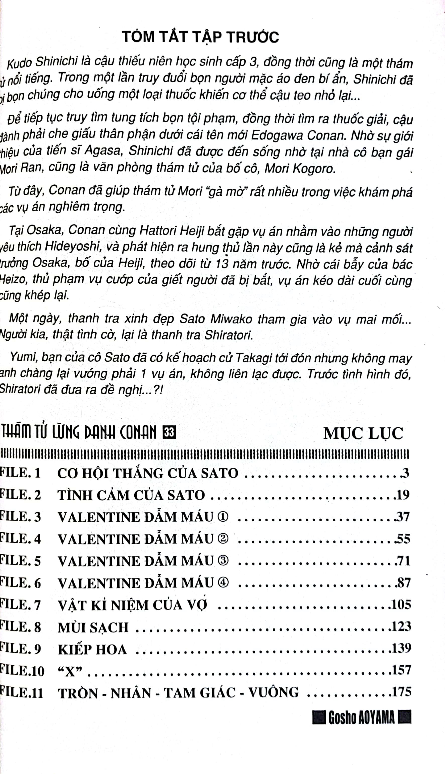 Mua tại TiktokThám Tử Lừng Danh Conan - Tập 33 Nghe đồn khi làm chocolate ở một biệt thự nọ thì tình yêu sẽ nảy nở, bọn Conan liền tới đó. Nhưng người Ran muốn tặng thì chẳng biết đang ở đâ Trong bão tuyết, một vụ giết người xảy ra ở biệt thự!! Nước mắt chảy dài trên má Ran?! Một Valentine đẫm mãu!