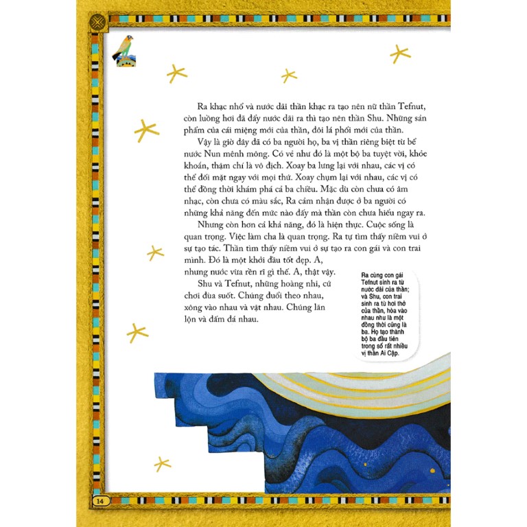 Cuốn sách được minh họa đẹp mắt thể hiện một thế giới thần tiên lộng lẫy kèm theo những thông tin quan trọng về phong tục, tập quán, văn minh của người Ai Cập cổ đại.