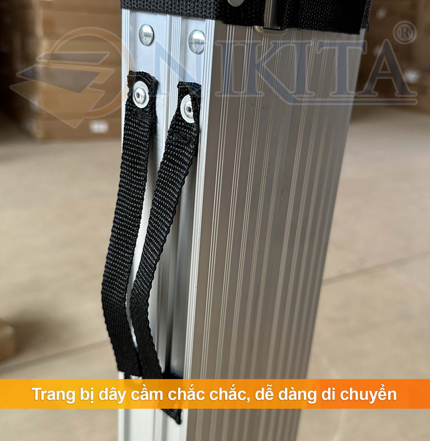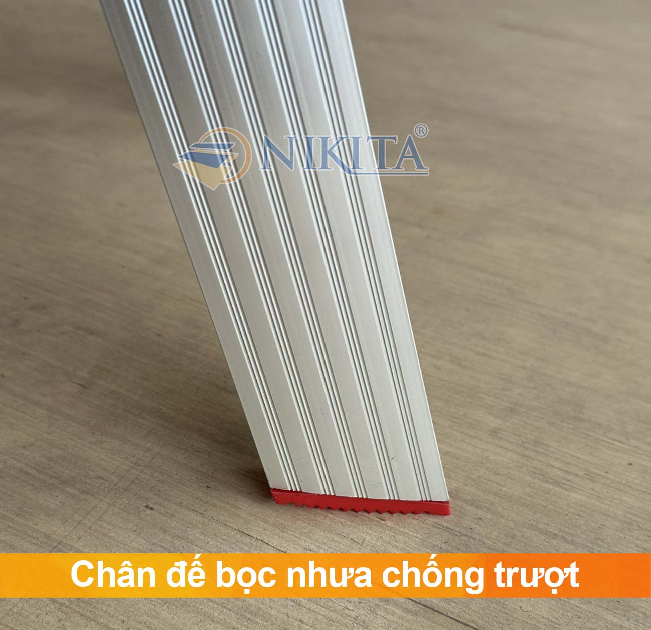 Thang nhôm Nikita NKT- NIKA20 Số lượng bậc: 6 bậc mỗi bên Chiều cao duỗi thẳng chữ I: 4 m Chiều cao chữ A : 1.9 m Trọng lượng: 7.2kg Công nghệ dập