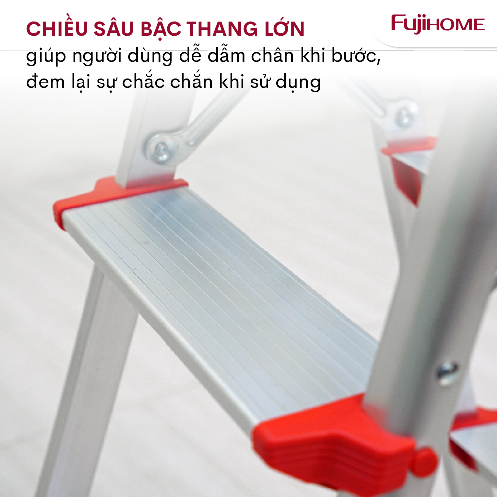 Thang nhôm gấp chữ A FUJIHOME DL203-- 3 bậc x2 [ Nhôm chịu lực cao- Chân chống trơn trượt - Gấp gọn tiện lợi] ƯU ĐIỂM SẢN PHẨM: - Bề mặt bầng thang thiết kế