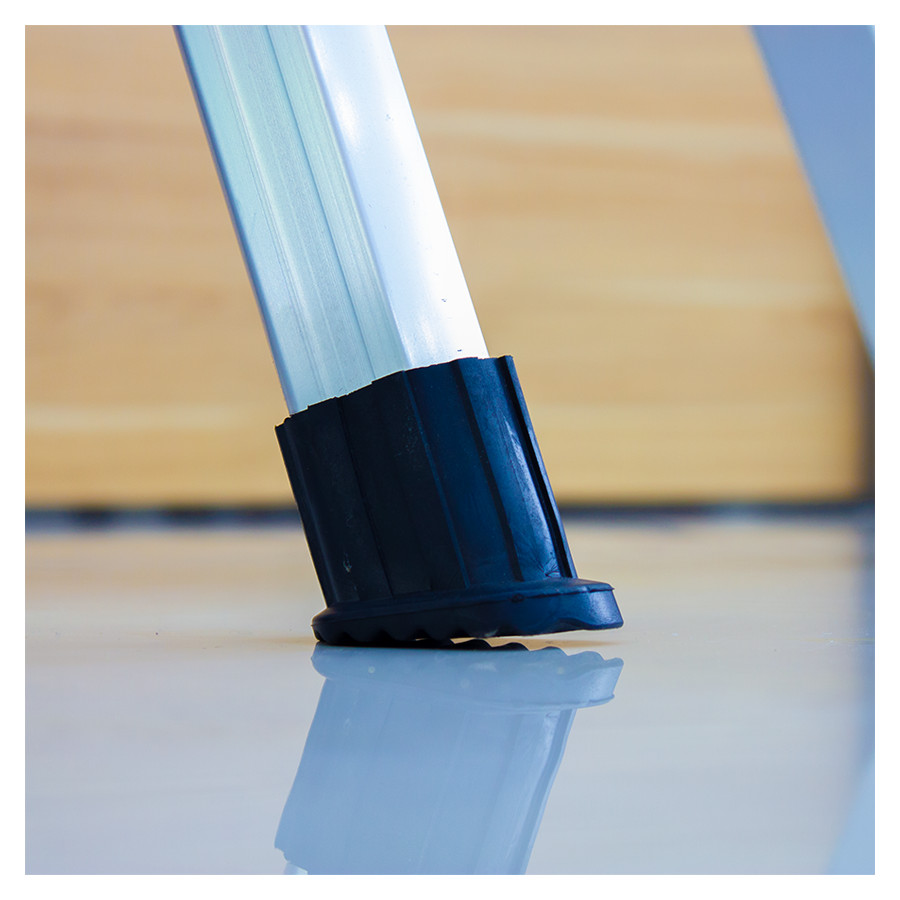 - Mỗi bậc thang được cố định bởi hai đinh tán, bậc thang rộng tạo cảm giác thoải mái và an toàn khi lên xuống trong quá trình sử dụng. Chân thang được kết cấu bền chắc, bọc nệm bằng nhựa ABS bền chắc, an toàn, hạn chế trơn trượt, bảo vệ nền nhà không bị trầy xước.