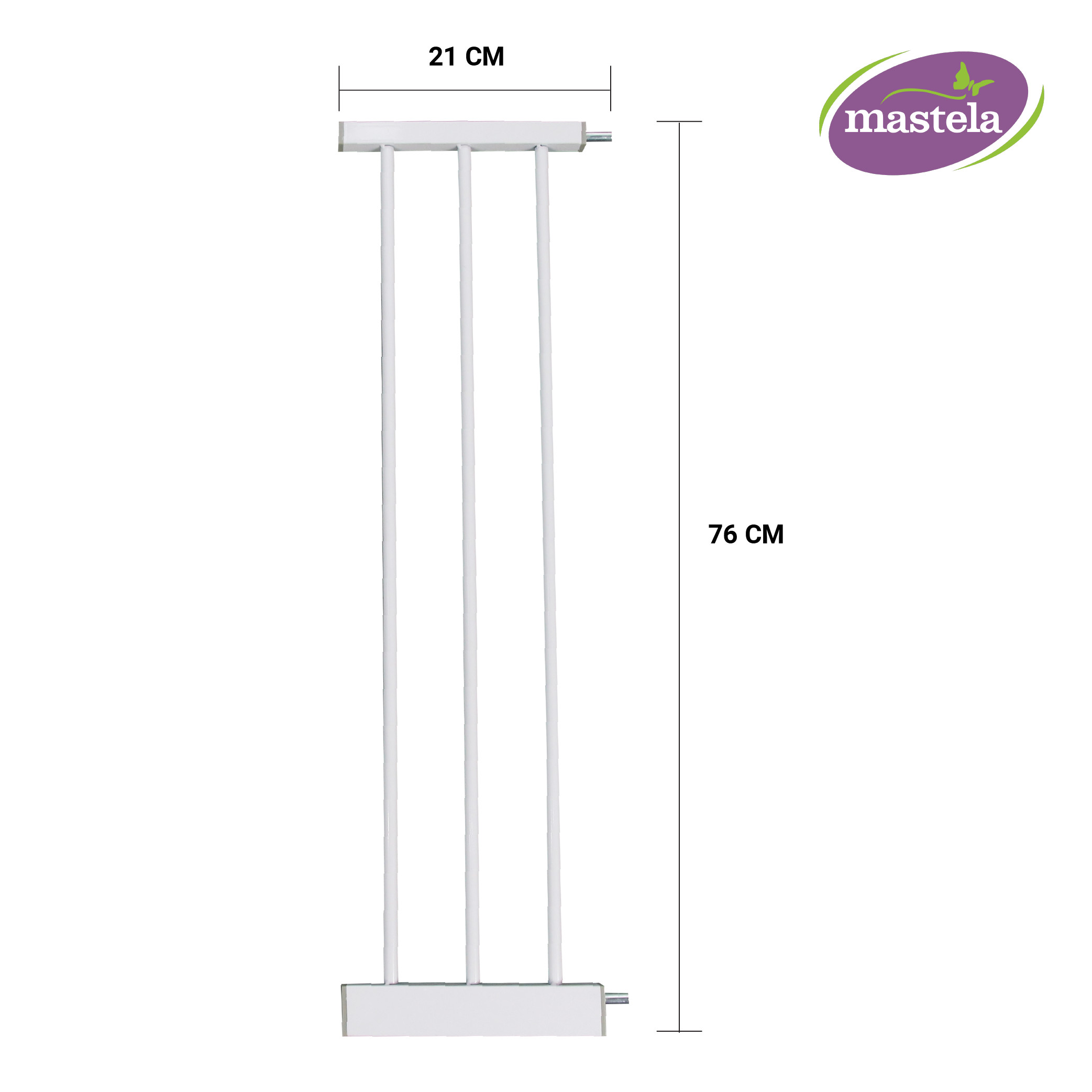• Chất liệu cao cấp, đạt tiêu chuẩn quốc tế     CÓ THỂ MỞ RỘNG KÍCH THƯỚC Thanh chắn cửa, chắn cầu thang Mastela D04 có thể được mở rộng với các thanh mở rộng với 4 kích thước khác nhau: