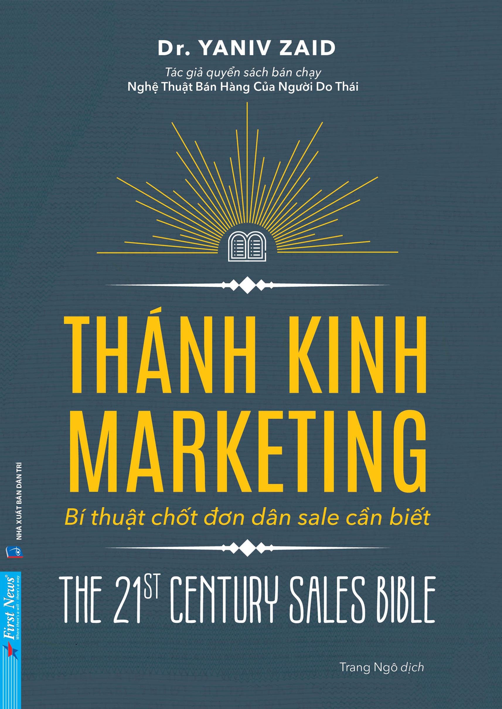 Cuốn sách “Thánh kinh marketing” thu hẹp khoảng cách giữa những điều bạn nhất thiết phải biết về bán hàng, tiếp thị, thuyết phục, đàm phán, thuyết trình và công việc kinh doanh nói chung với những điều bạn được dạy trong môi trường “chính quy”, nhằm giúp bạn phát huy tối đa mọi tiềm năng và đưa bạn tới đỉnh cao của thành công. Tiến sĩ Yaniv Zaid mang đến cho độc giả của ông mười quy tắc vàng trong marketing, thương thuyết và bán hàng, những điều họ cần phải biết trong thế kỷ 21.