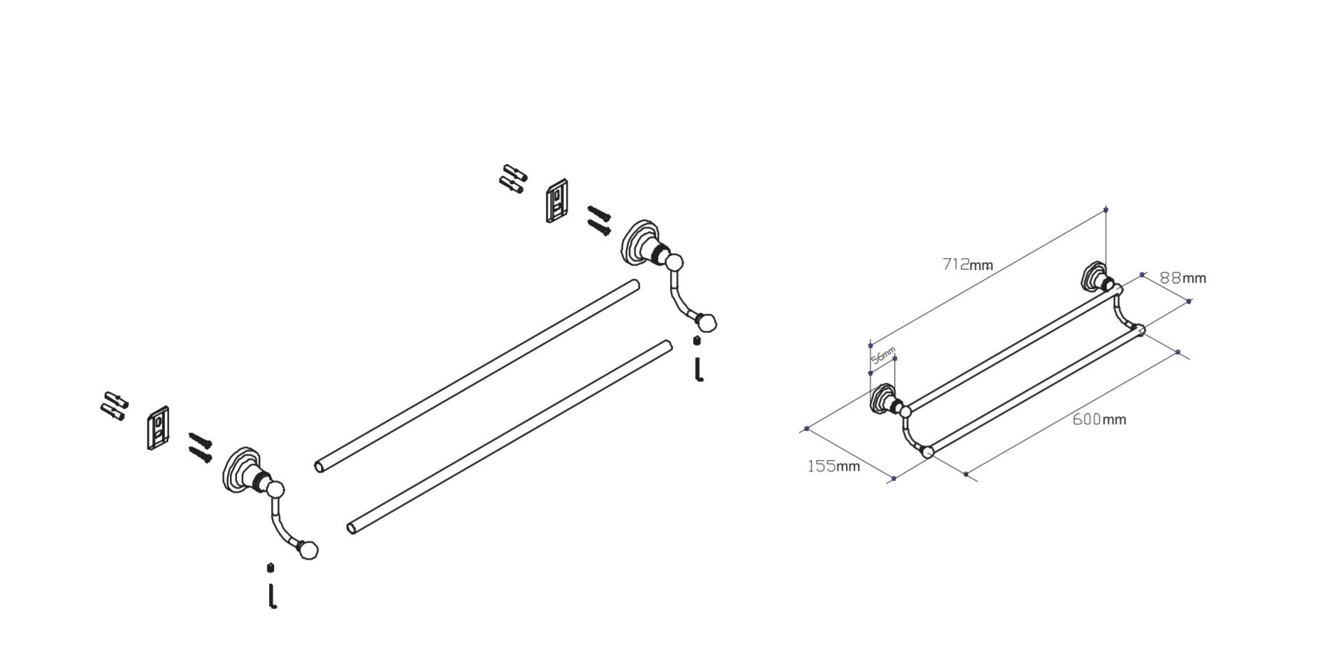THANH VẮT KHĂN ĐÔI DÀI 60 CM DÒNG TYLER MOEN - 90021