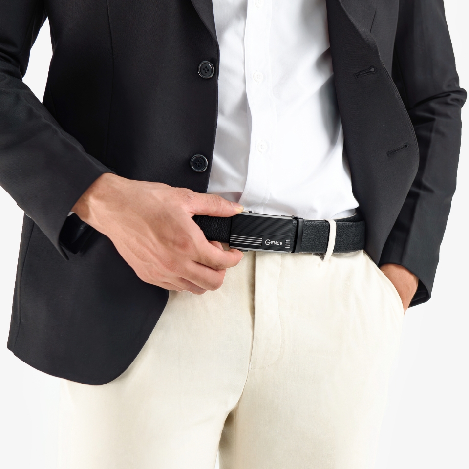 ✨Thắt Lưng Da Nam GENCE LG31 Da Bò Cao Cấp Màu Đen Viền Kim Loại Mạ Bạc