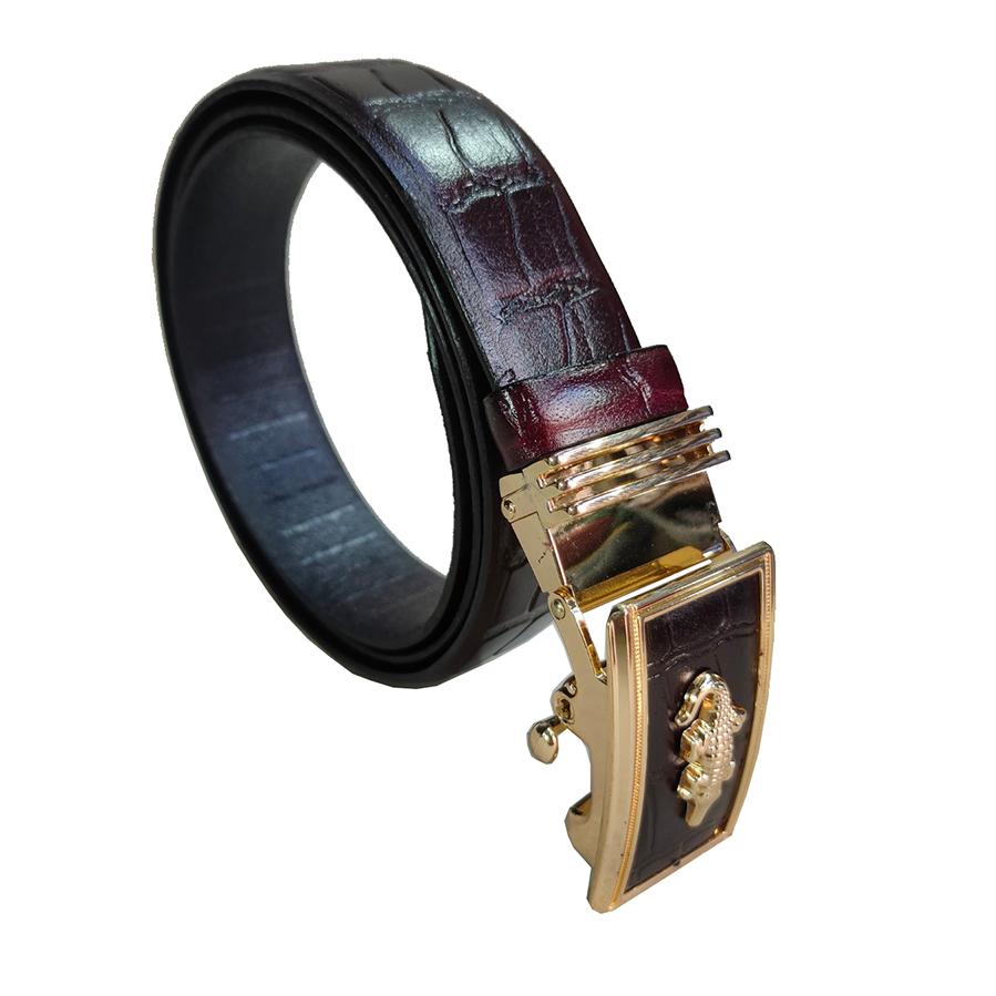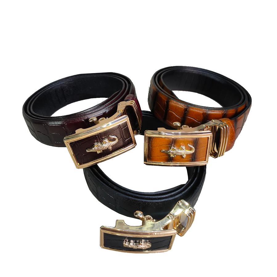 Thắt lưng nam khoá tự động INOX rất bền không sét rỉ dây da bò 100% in vân cá sấu -VIDEO 3008