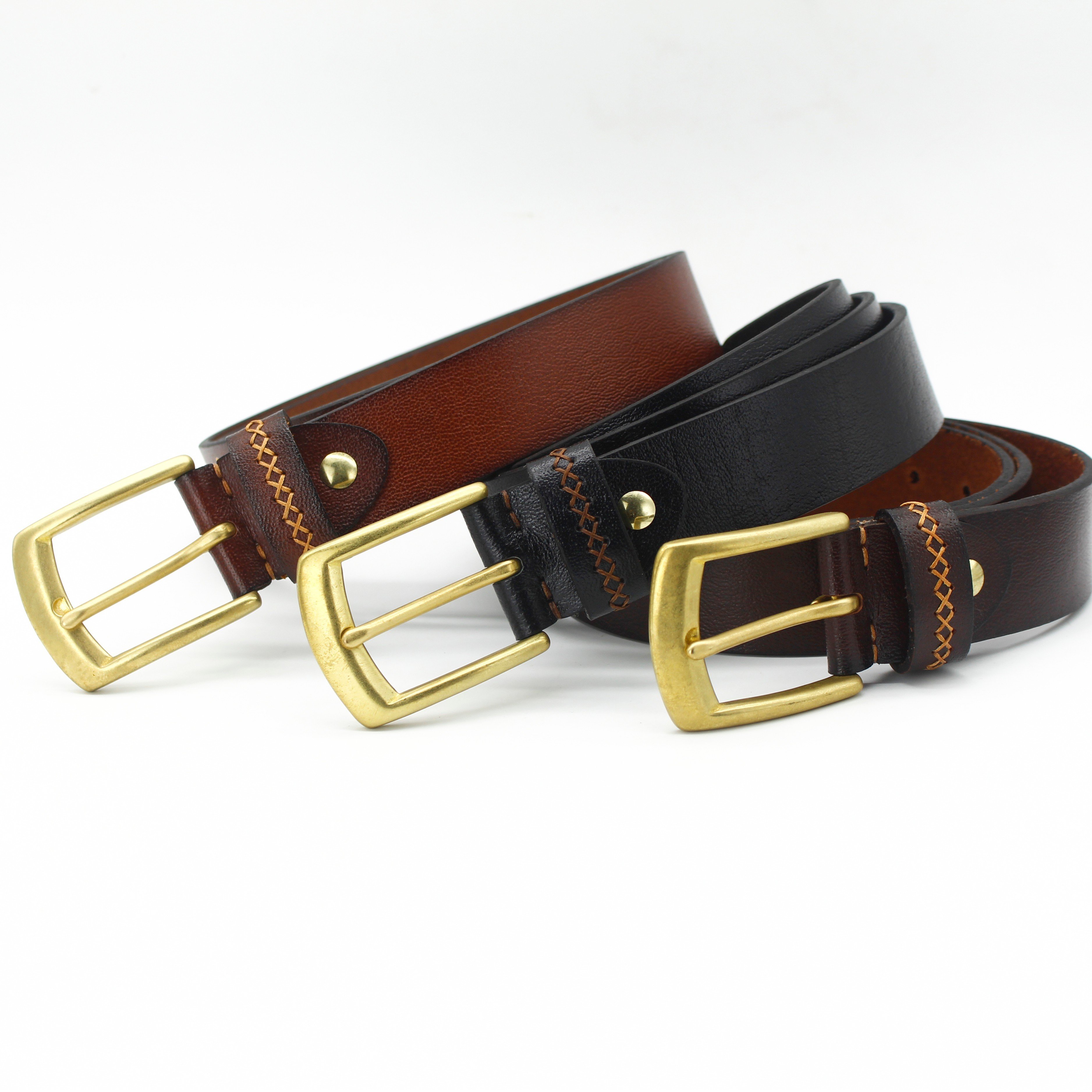 Dây da thắt lưng nam da bò sáp DHM-040 | Khoá kim đầu đồng nguyên khối | Bảo hành 12 tháng