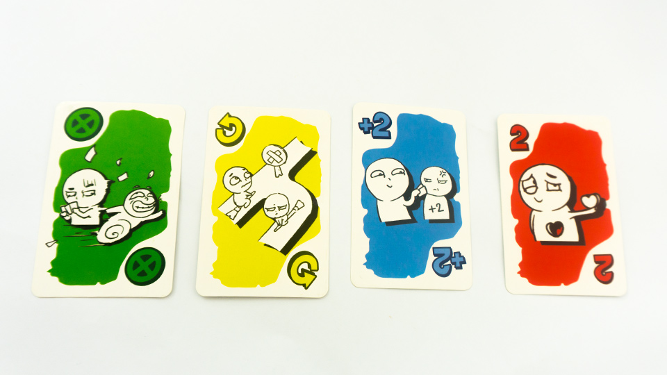 - Tạo nghiệp: Tượng trưng cho tất cả các màu. Chuyển lượt cho 1 người chơi khác, chỉ định người chơi đó phải đánh "+2" hoặc "+4" lên người chơi tiếp theo của vòng. Nếu người chơi đó không thể đánh (kiểm tra bài trên tay), bạn phải rút 2 lá
