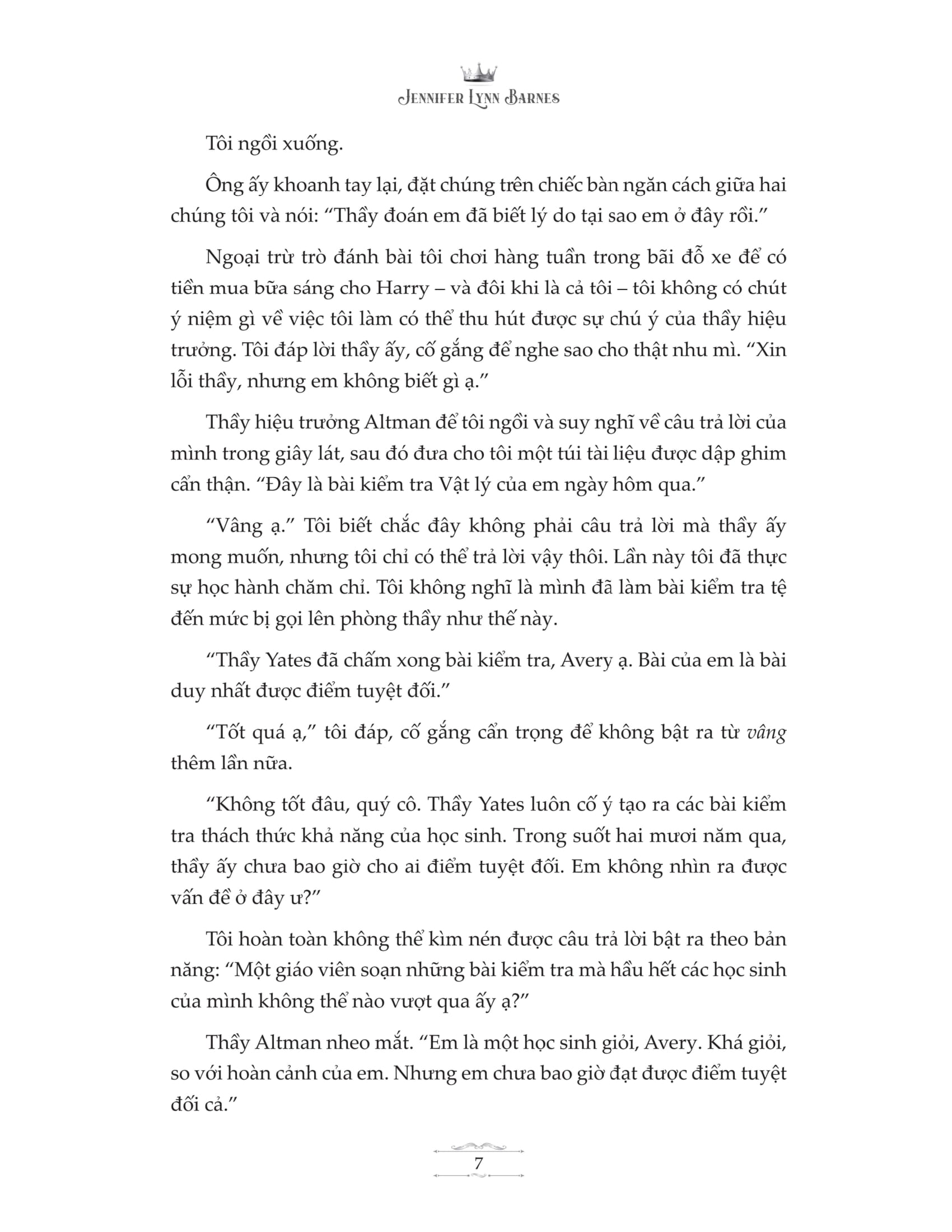 Để nhận được tài sản thừa kế của mình, Avery phải chuyển đến Nhà Hawthorne – một khu nhà rộng lớn với đầy những lối đi bí mật, nơi mọi căn phòng đều mang dấu ấn của người ông đã qua đời và tình yêu của ông đối với các câu đố và mật mã. Bốn cháu trai Nhà Hawthorne – những chàng trai nguy hiểm – vô cùng thông minh, lớn lên với mọi kỳ vọng rằng một ngày nào đó, chúng sẽ được thừa kế hàng tỷ đô-la. Grayson – người được cho là sẽ trở thành người thừa kế – tin rằng Avery là một kẻ lừa đảo và anh quyết tâm lật mặt cô. Anh trai của cậu – Jameson – xem cô như một cuộc vượt rào cuối cùng mà ông ngoại đã để lại cho họ: một câu đố cần được giải đáp.