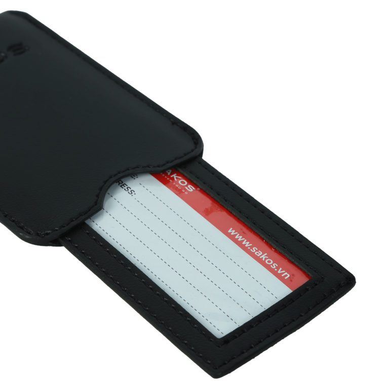 - Chống thất lạc hành lý. THÔNG SỐ KỸ THUẬT Kích thước: (DxRxC) 8 x 11 cm Chất liệu: Simili Màu sắc: Đen Thương hiệu: Bảo hành: 01 tháng CHI TIẾT SẢN PHẨM Thiết kế tiện lợi, sang trọng Name tag da với logo Sakos được dập nổi tinh tế, khẳng định đẳng cấp và sự khác biệt cho người sử dụng. Phụ kiện này gồm túi đựng và thẻ tên được thiết kế với dây móc hành lý chắc chắn và dễ sử dụng, giúp bạn gắn vào vali, túi xách hay balo một cách nhanh chóng và an toàn. Kích thước nhỏ gọn nhưng vừa vặn để hiển thị thông tin cần thiết, giúp bạn dễ dàng nhận diện hành lý khi đi du lịch hay trong những chuyến công tác xa. Chất liệu Simili cao cấp Name tag da Sakos được chế tác từ chất liệu Simili cao cấp, mang đến vẻ ngoài sang trọng, tinh tế, rất chắc chắn và bền màu theo thời gian. Chất liệu này có khả năng chống nước tốt, đồng thời giúp việc lau chùi vệ sinh dễ dàng hơn để món phụ kiện của bạn luôn mới mẻ. Bạn có thể sử dụng sản phẩm trong suốt chuyến đi, sau đó vệ sinh nhẹ nhàng bằng khăn ướt và tiếp tục sử dụng lại cho những chuyến đi tiếp theo. Nhỏ gọn và tiện dụng Name tag da Sakos có thiết kế nhỏ gọn, dễ dàng đeo vào hành lý ở những vị trí dễ nhận thấy như quai đeo của balo, túi xách hay quai xách của vali. Trên thẻ đeo được chừa trống để bạn ghi tên, địa chỉ, email và số điện thoại cần thiết. Trong trường hợp hành lý của bạn không may bị nhầm lẫn khi ký gửi hành lý, người cầm nhầm hay an ninh sân bay có thể liên lạc với bạn để trả lại hành lý.