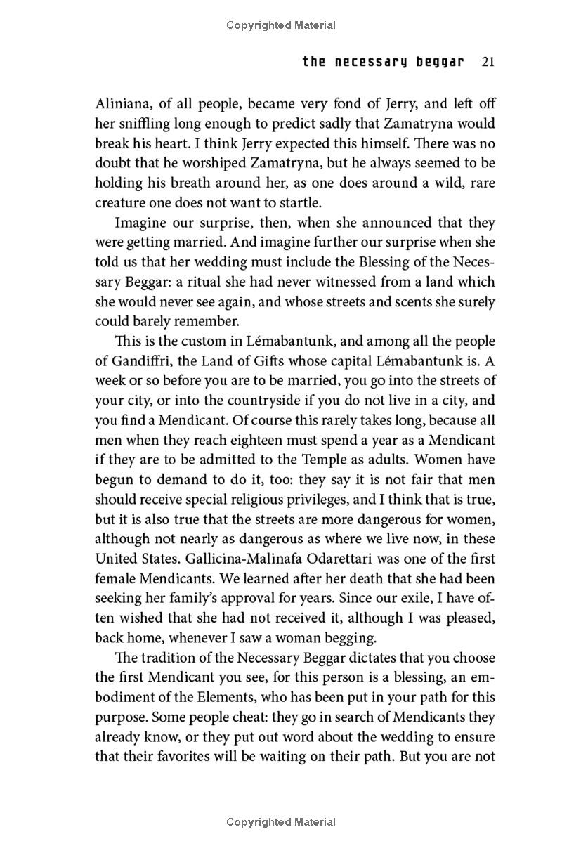 Susan Palwick, author of the remarkable Flying in Place, now returns with a compelling new novel of a family cast out of an idyllic realm, learning to live in our own troubled world. With its richly imagined portrayal of a lost culture, complete with poetry and fables, traditions and customs, and its searing yet sympathetic view of own society as seen through new eyes, The Necessary Beggar is an compelling examination of humanity and the redemptive power of love, in the spirit of Ursula K. Le Guin's The Dispossessed and Robert A. Heinlein's Stranger in a Strange Land.