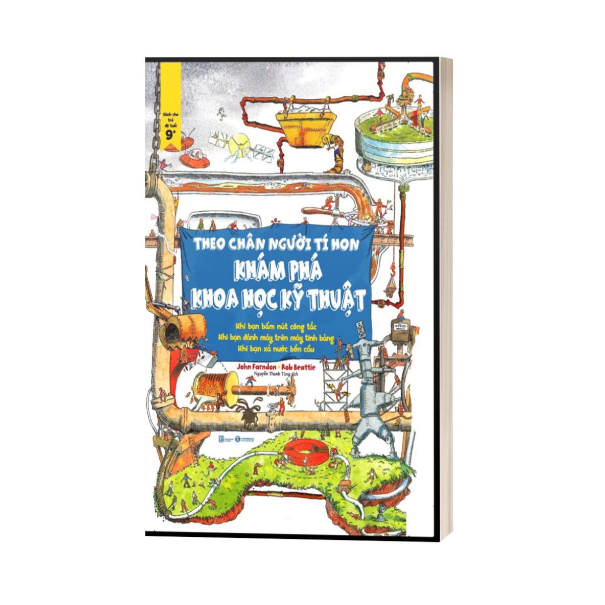 Khám Phá Khoa Học Kỹ Thuật là một trong bộ ba sách khoa học Theo Chân Người Tí Hon, cuốn sách có minh họa tuyệt vời, đưa chúng ta tìm hiểu cụ thể về cấu tạo và cách hoạt động của những máy móc xung quanh chúng ta, các sơ đồ lớn, đầy màu sắc được làm sống động bởi những người tí hon chạy xung quanh vận hành.