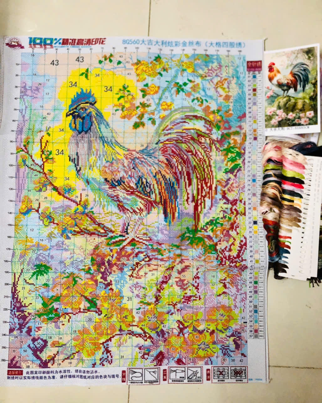 Tên tranh: Tranh thêu chữ thập Gà trống 8G560 Sản phẩm này chỉ đẹp, nan vải to, ký hiệu rõ, màu sắc tươi sáng dễ thêu. Thể loại: Tranh thêu chữ thập - sản phẩm