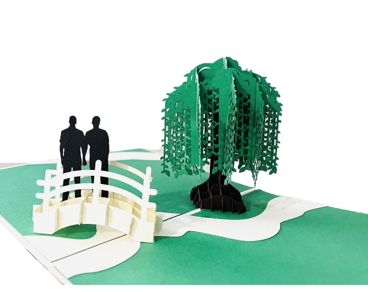 Thể hiện sự tự do và tình yêu chân thành với thiệp 3D Pop Up cặp đôi LGBT. Khi mở ra, hình ảnh hai người nắm tay nhau cùng đi trên cây cầu nhỏ dưới bóng cây liễu xanh mát bật nổi đầy sống động, mang lại cảm giác lãng mạn và ý nghĩa. Thiệp phù hợp làm quà tặng trong các dịp Valentine, kỷ niệm tình yêu, sinh nhật người thương hoặc các dịp quan trọng để khẳng định sự gắn kết và tình cảm đặc biệt. Đặc điểm nổi bật (Bullet points)