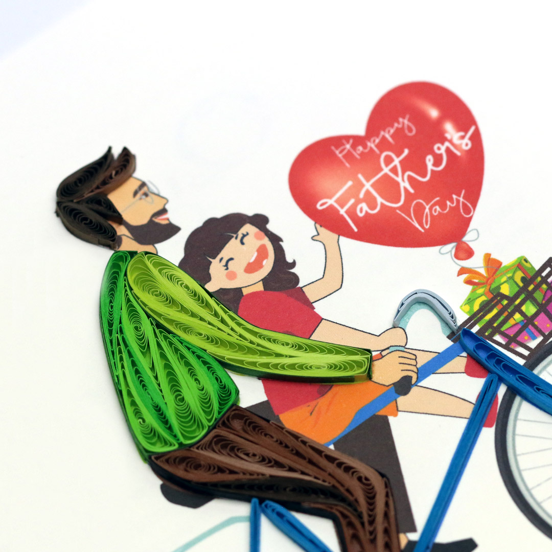 ✨Thiệp chúc Ngày của ba, thiệp giấy xoắn 15 x 15 cm, Ba và con trên chiếc xe đạp
