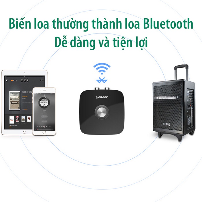 Bluetooth Ugreen 30445 sẽ biến chiếc loa, amply bình thường của bạn thành một thiết bị phát nhạc không dây với chất lượng âm thanh tuyệt hảo. Trải nghiệm công nghệ giải trí tiện lợi ở mọi nơi. Thiết bị tích hợp cổng kết nối RCA bông sen dùng cho Amply và cổng Audio 3.5mm dùng cho loa điện tử và các thiết bị phát nhạc khác.