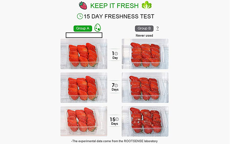 Mỗi loại thực phẩm đều có những đặc tính riêng, nhưng với Guardian Angel thực phẩm của bạn sẽ được bảo quản một cách tốt nhất và lâu nhất trong tủ lạnh nhà mình. Guardian Angel hạn chế sự phát triển của khí ethylene trên bề mặt trái cây và rau củ quả, từ đó giúp thực phẩm tươi ngon lâu hơn và kéo dài thời gian bảo quản gấp 2 – 10 lần so với khi không dùng Guardian Angel. Thiết bị sẽ phát huy tác dụng này nhiều nhất với các loại rau còn rễ.