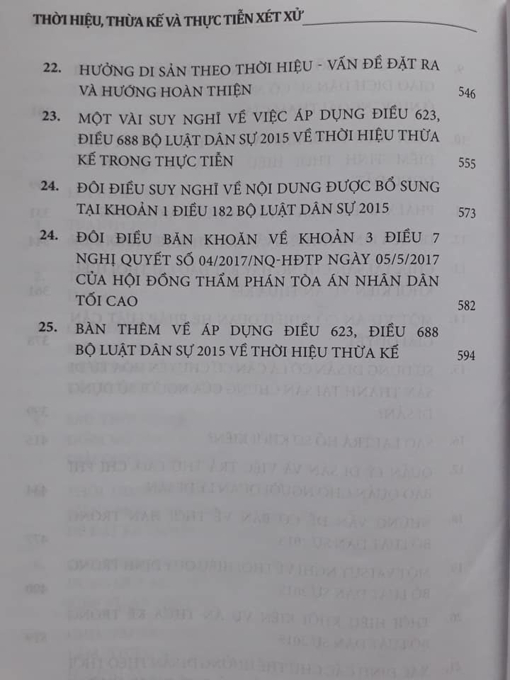 Trong xu thế hội nhập và phát triển, để các quan hệ dân sự phát huy được tác dụng tích cực, góp phần thúc đẩy xã hội phát triển lành mạnh thì phải tạo sự ổn định cho các quan hệ dân sự, từ đó tạo tâm lý yên tâm cho các chủ thể trong giao lưu dân sự. Do đó, pháp luật quy định các thời hạn để các bên có thể lựa chọn cách xử sự cho phù hợp vì lợi ích của mình. Khi kết thúc thòi hạn đó trong những điều kiện theo luật định có thể làm phát sinh hay chấm dứt quyền, nghĩa vụ của những chủ thể có liên quan. Thời hạn đó được gọi là thời hiệu.Qua thực tiễn xét xử cho thấy, việc hiểu và áp dụng các quy định của pháp luật về thời hiệu trong các vụ việc dân sự nói chung, tranh chấp về thừa kế nói riêng đang còn có những quan điểm, ý kiến khác nhau. Cũng vì nguyên nhân này mà có một số vụ việc đường lối giải quyết của các cấp Tòa án không thông nhất, phải xét xử nhiều lần, gây nhiều tốn kém cả về thời gian, công sức, tiền bạc cho cơ quan tiến hành tố tụng cũng như người dân, nhất là đối với những vụ việc thừa kê mà thời điểm mở thừa kế đã diễn ra nhiều năm trước, khi pháp luật có sự thay đổi, các quan hệ đã có nhiều biến động, việc thu thập tài liệu, chứng cứ gặp nhiều khó khán...Pháp lệnh Thừa kế 1990 lần đầu tiên đã quy định về thời hiệu thừa kế, là cơ sở cho việc tính thời hiệu thừa kế của các vụ việc đã mở trước, trong và sau khi Pháp lệnh này có hiệu lực. Bộ luật Dân sự 1995, Bộ luật Dân sự 2005 và các văn bản hướng dẫn thi hành trên cơ sở kế thừa và quy định cụ thể hơn đã tạo cơ sở pháp lý vững chắc cho việc xác định thời hiệu khởi kiện về thừa kế và các quan hệ pháp luật liên quan. Khi Bộ luật Dân sự 2015 được ban hành đã đánh dấu một bước tiến quan trọng trong kỹ thuật lập pháp, tư duy pháp lý trong việc điều chỉnh các quan hệ dân sự nói chung, quan hệ pháp luật thừa kế nói riêng, đặc biệt là các quy định về thời hiệu thừa kế, thời hiệu hưởng quyền dân sự, miễn trừ nghĩa vụ dân sự.Với mục đích góp phần nâng cao nhận thức trong thực thi và áp dụng pháp luật ngày một tốt hơn, tạo sự thống nhất trong thực tiễn xét xử, từ đó làm cho các quy định rất hợp lý, khoa học về thừa kế, về thời hiệu của Bộ luật Dân sự có sức sống mạnh mẽ hơn nữa, Nhà xuất bản Tư pháp tái bản có sửa đổi, bổ sung cuốh Thời hiệu, thừa kế và thực tiễn xét xử của Luật sư, Trọng tài viên Trung tâm Trọng tài quốc tế Việt Nam (VIAC) Tưởng Duy Lượng - nguyên Phó Chánh án Tòa án nhân dân tối cao, người có bề dày trong công tác nghiên cứu khoa học pháp lý, với vốn kiến thức chuyên sâu về lý luận trong lĩnh vực pháp luật dân sự nói chung, pháp luật về thời hiệu, thừa kế nói riêng và kinh nghiệm nhiều năm trực tiếp xét xử các vụ việc dân sự, kinh tế.Qua nghiên cứu về lý luận, về thực tiễn, trên cơ sở những vụ việc cụ thể hoặc những tình huống giả định có thể xảy ra trong thực tiễn để minh họa, làm rõ từng chủ đề được nêu trong cuốn sách, từ đó đưa ra những nhận xét, bình luận và các đề xuất về nội dung cần hướng dẫn, sửa đổi, bổ sung luật hoàn toàn mang tính khoa học và thể hiện quan điểm của riêng tác giả.