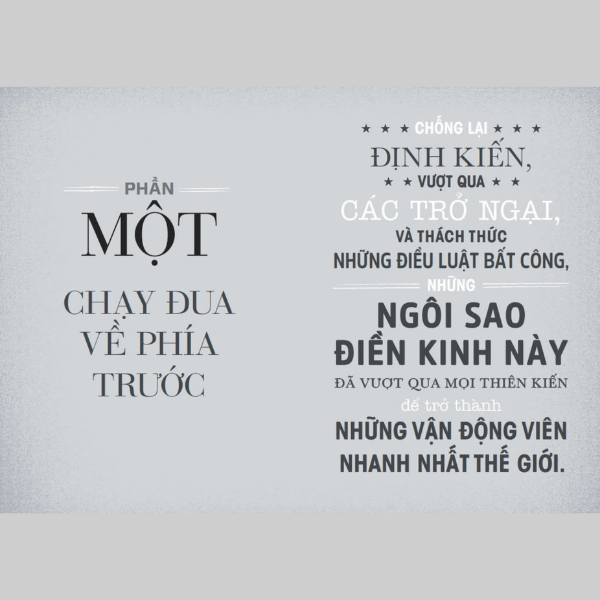 Tác giả: Deena Kastor, Michelle Hamilton Dịch giả: Trần Lê, Bobby Nghiêm Khổ sách: 15.5x23cm Số trang: 360 Giá bán: 145,000 VNĐ ISBN: 978-604-1-17972-1 In lần thứ 1 năm 2021 Giới thiệu tóm tắt tác