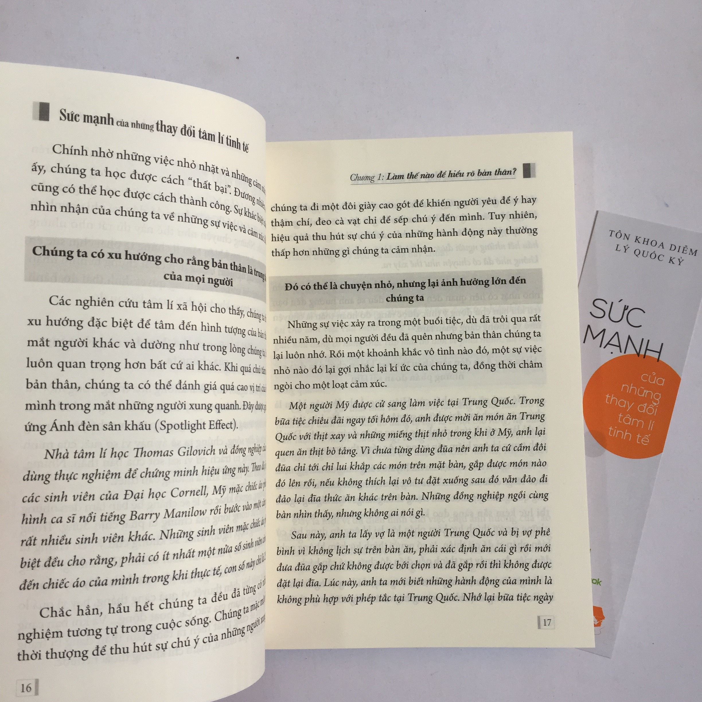 - Bạn đã thực sự hiểu rõ về bản thân mình chưa? Liệu bạn có trả lời được câu hỏi “Mình là ai” không? Điều tưởng chừng như đơn giản này thực chất lại là vấn đề không hề dễ dàng. Benjamin Franklin từng nói: “Có ba thứ cực kỳ cứng: thép, kim cương và tự thấu hiểu bản thân”. Quả thật, hiểu được bản thân là điều cực kì khó khăn. Thông thường, chúng ta thường hiểu về mình thông qua những gì người khác đánh giá. Ngoài ra, chúng ta luôn cho rằng mình là tiêu điểm chú ý của người khác và để tâm trạng chi phối cách nhìn nhận sự việc, thế giới xung quanh trong khi thực tế có thể không phải như chúng ta thấy. Và làm thế nào để hiểu rõ bản thân Cuốn sách được thể hiện một cách gần gũi hơn với độc giả, để độc giả có thể dễ dàng lí giải được tâm lí học, dễ dàng “đọc hiểu” được chính bản thân mình. Cuốn sách chỉ ra những khó khăn mà mọi người có khả năng phải đối mặt, đồng thời đưa ra những giải pháp tương ứng. Hãy cầm ngay trên tay cuốn sách “Sức mạnh của những thay đổi tâm lý tinh tế” để niềm đam mê và ước mơ còn dang dở của bạn trở thành hiện thực. Bạn chỉ sống một lần trên đời, nắm bắt cơ hội để thay đổi khi bản thân còn có thể. Cảm ơn bạn đã tham khảo combo sách này. Chúc một ngày tốt lành!