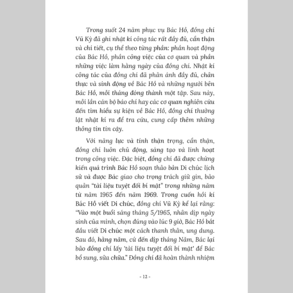Kỉ niệm 55 ngày mất của Chủ tịch Hồ Chí Minh (1969-2024), thân gửi tới bạn đọc cuốn sách Thư kí Bác Hồ kể chuyện – một phần di sản không hề nhỏ về Bác Hồ mà đồng chí Vũ Kỳ đã lưu giữ và mong muốn trao gửi tới nhiều thế hệ sau.