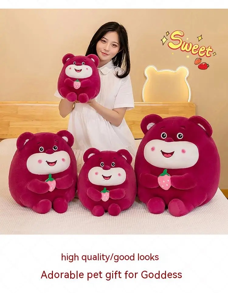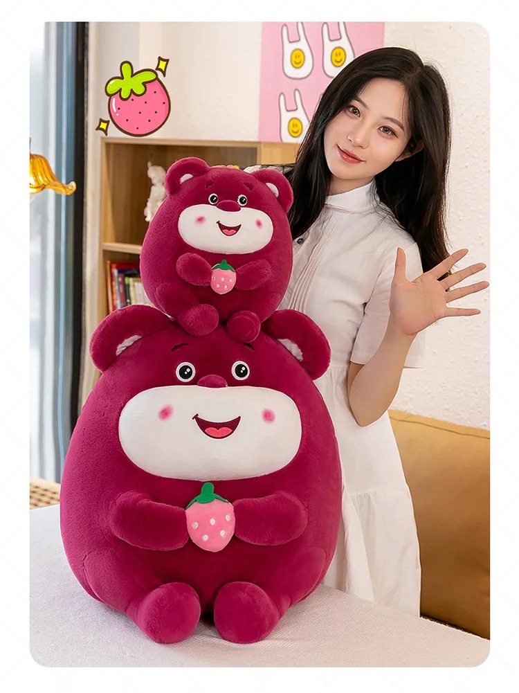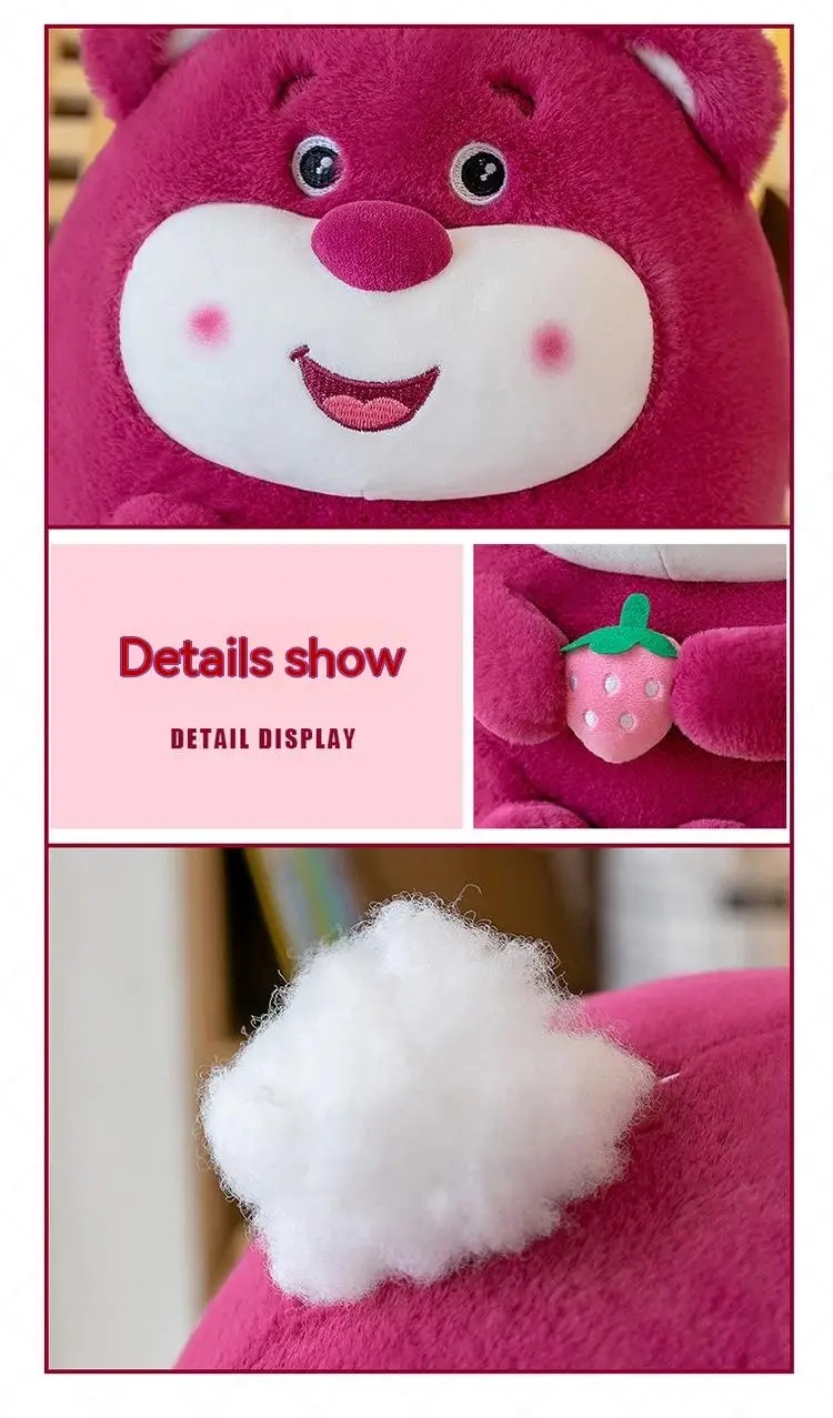 Gấu Dâu Lotso Huggin Bear Nằm Lông Xù Tai Dâu cực Cute, Thú nhồi Bông Hoạt Hình Lotso Đáng yêu | Cộn