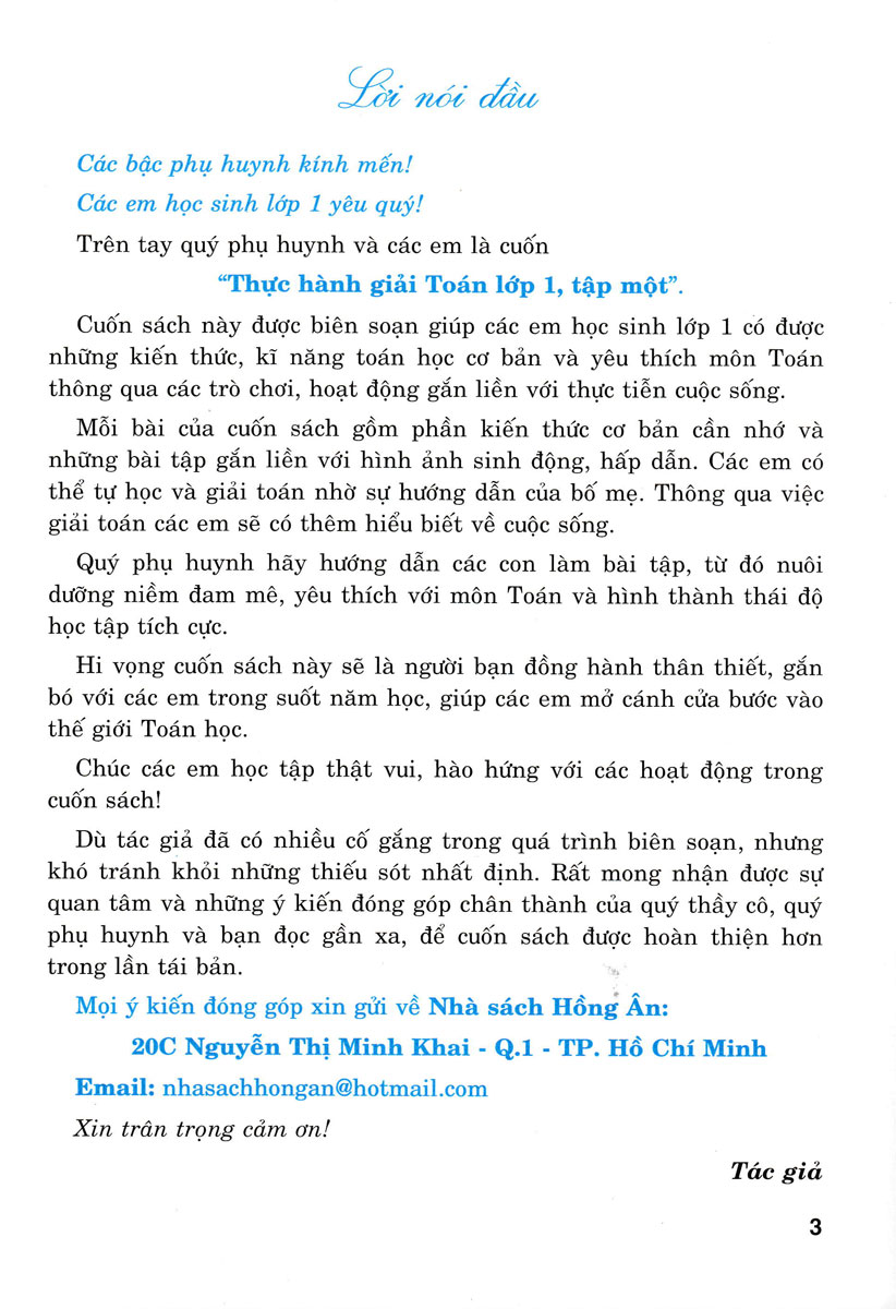 Thực Hành Giải Toán Lớp 1 Tập 1 (Theo Chương Trình Tiểu Học Mới Định Hướng Phát Triển Năng Lực) được biên soạn giúp các em học sinh lớp 1 có được những kiến thức, kĩ năng toán học cơ bản va yêu thích môn Toán thông qua các trò chơi, hoạt động gắn liền với thực tiễn cuộc sống.
