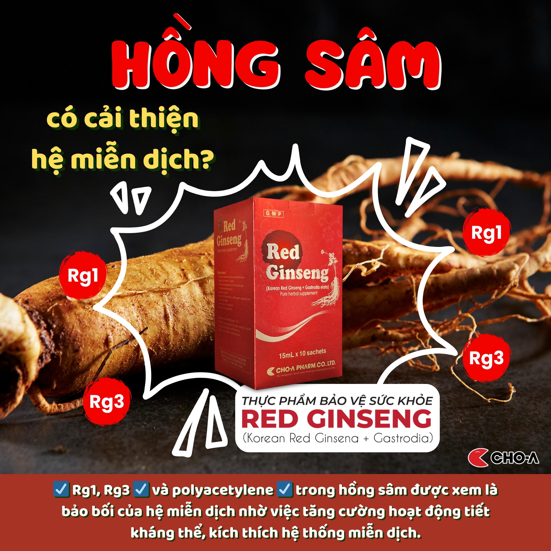 THỰC PHẨM BẢO VỆ SỨC KHỎE RED GINSENG CẢI THIỆN HỆ MIỄN DỊCH (HỘP X 10 GÓI) Red Ginseng có xuất xứ từ Hàn Quốc, được sản xuất bởi nhà máy Dược Phẩm CHOA PHARM. CO., LTD, áp dụng quy trình sản xuất và kiểm duyệt chất lượng tiên tiến. Công Dụng: