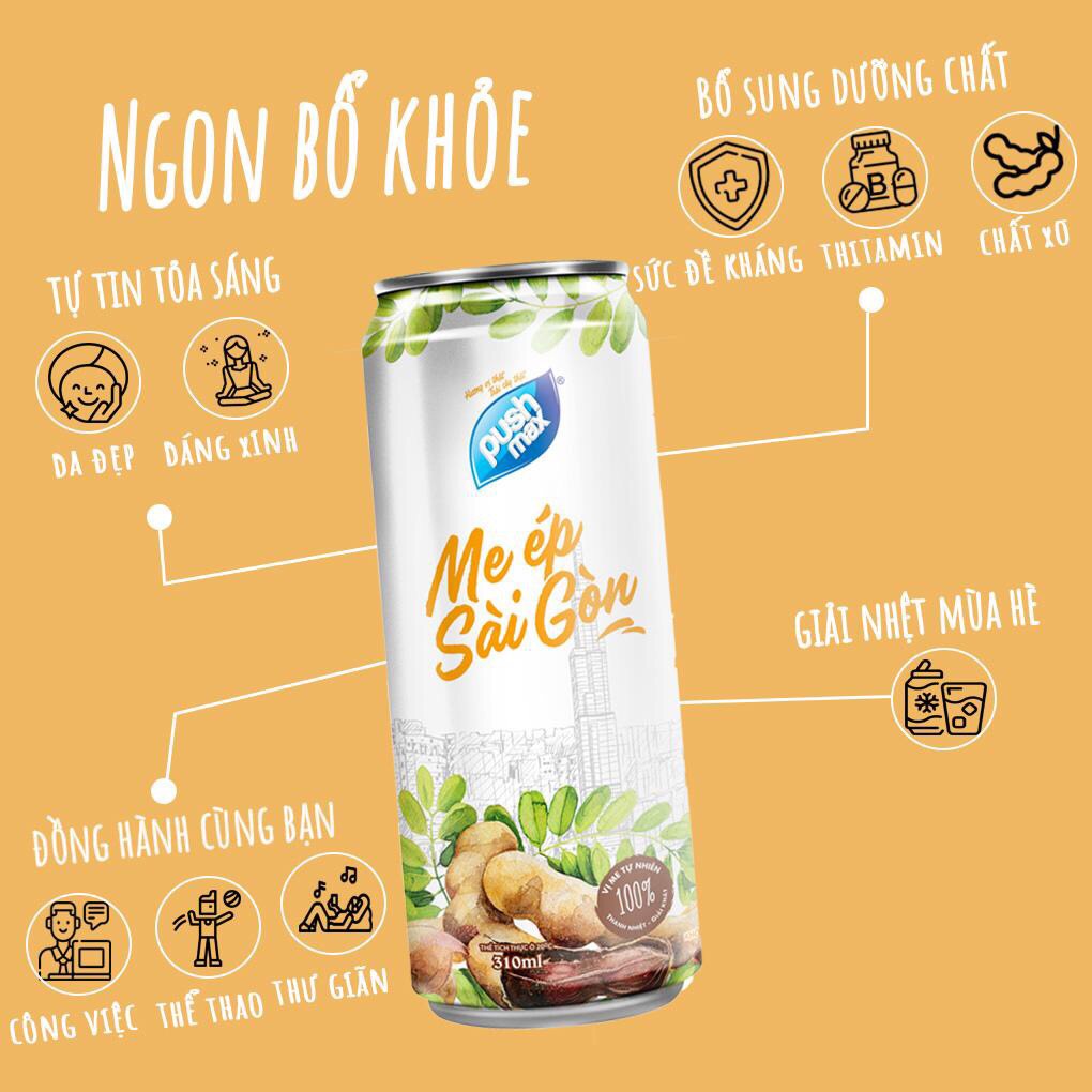 ✨Thùng 24 Lon Nước Trái Cây Me Ép Sài Gòn Pushmax (310ml x 24 lon)