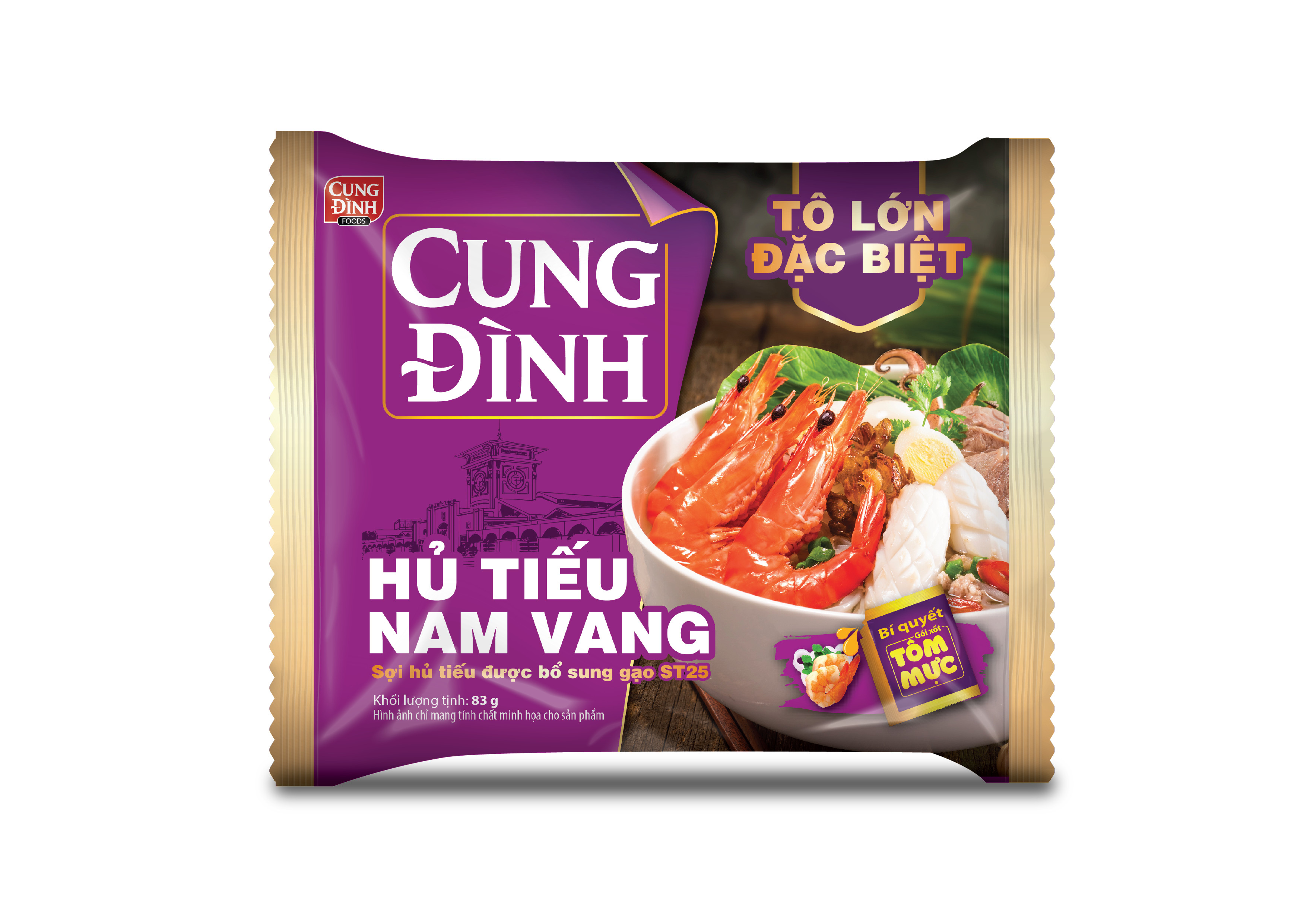 Hủ tiếu Cung Đình mang đến bữa ăn cực tiện lợi và thơm ngon. Hủ tiếu Nam Vang Cung Đình là sản phẩm hủ tiếu ăn liền hương vị hủ tiếu Nam Vang đặc trưng