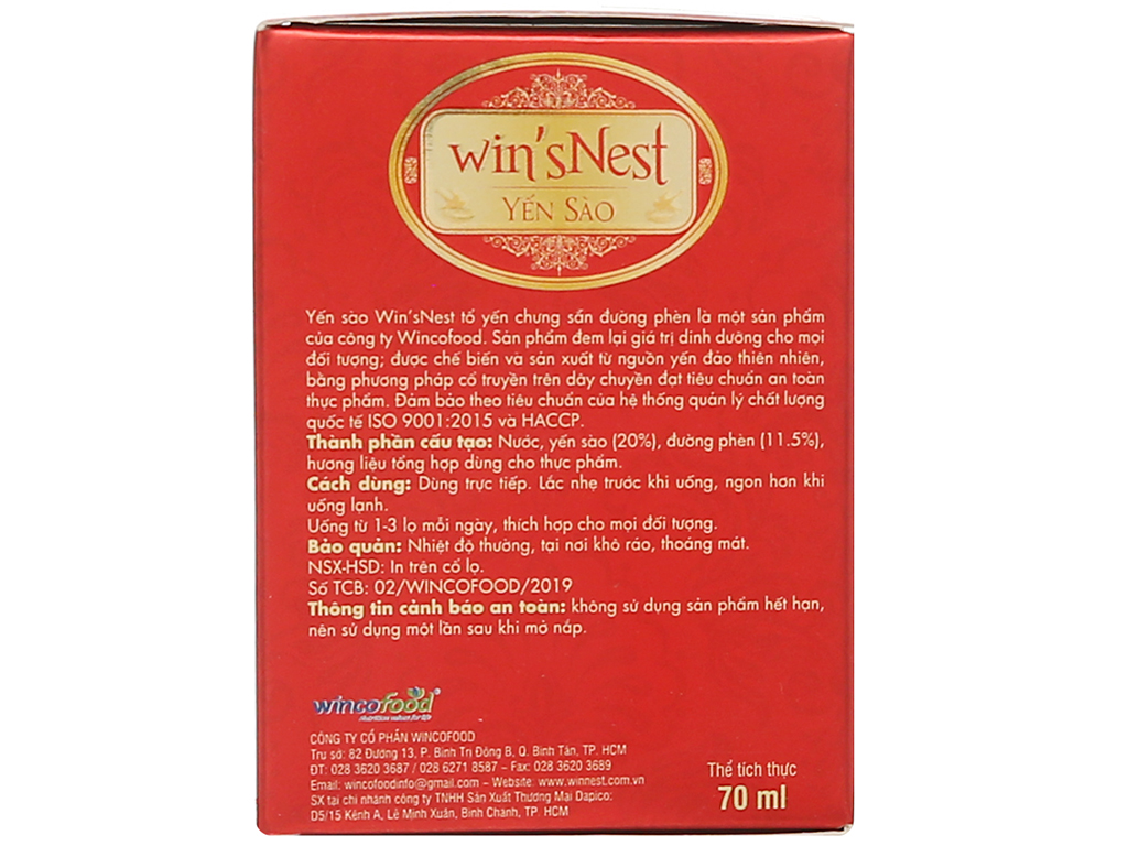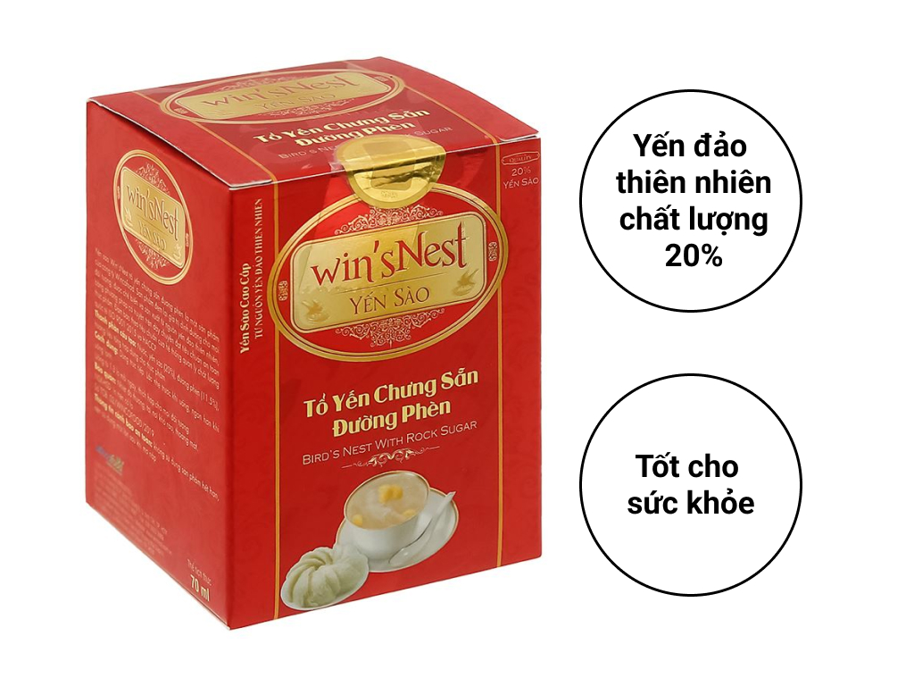 Yến sào cao cấp win'sNest tổ yến chưng sẵn đường phèn được sản xuất từ nguồn yến đảo thiên nhiên, là một sản phẩm của công ty wincofood. Được sản xuất bằng phương pháp cổ truyền trên dây chuyền đạt tiểu chuẩn an toàn thực phẩm.