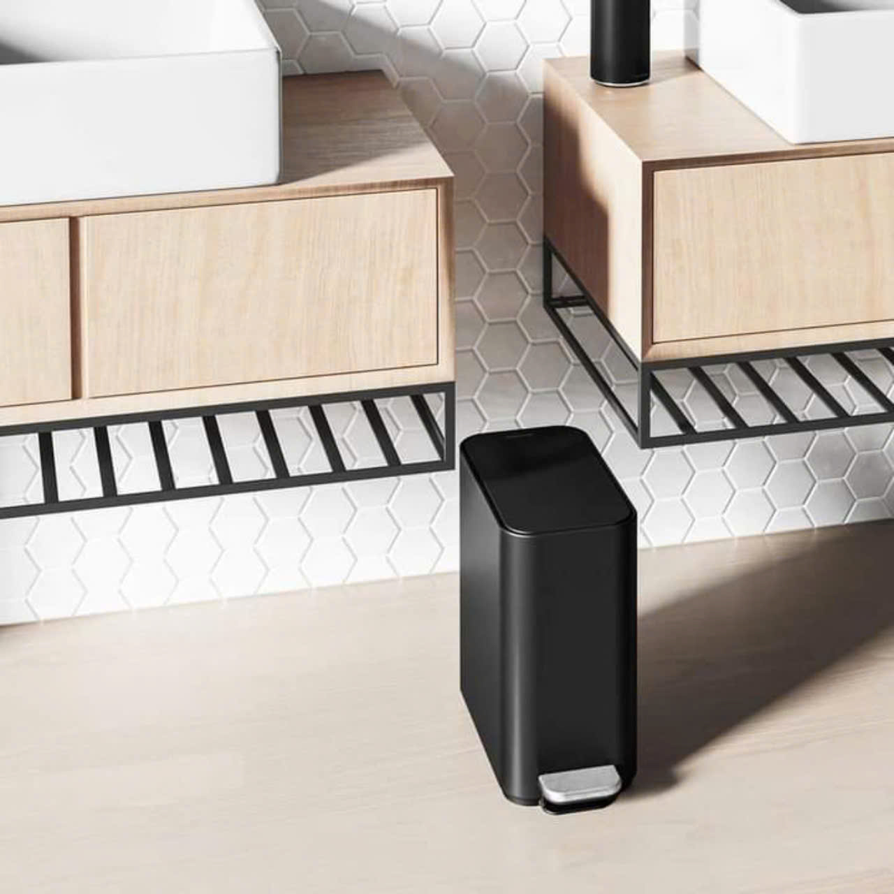 Sự thanh lịch tiết kiệm không gian - Thùng rác phòng tắm EKO này có kiểu dáng thanh mảnh và gọn gàng, được thiết kế để vừa vặn hoàn hảo với không gian chật hẹp