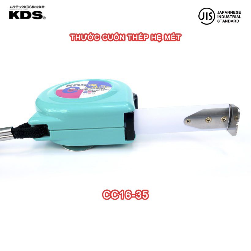 - Thước cuộn thép KDS CC có phần lưỡi thước dài, đủ để đáp ứng nhu cầu đo đạc từ đơn giản đến chuyên nghiệp. Có 2 kích thước cho bạn lựa chọn là 3.5m (CC16-35) và 5.5m (CC19-55).